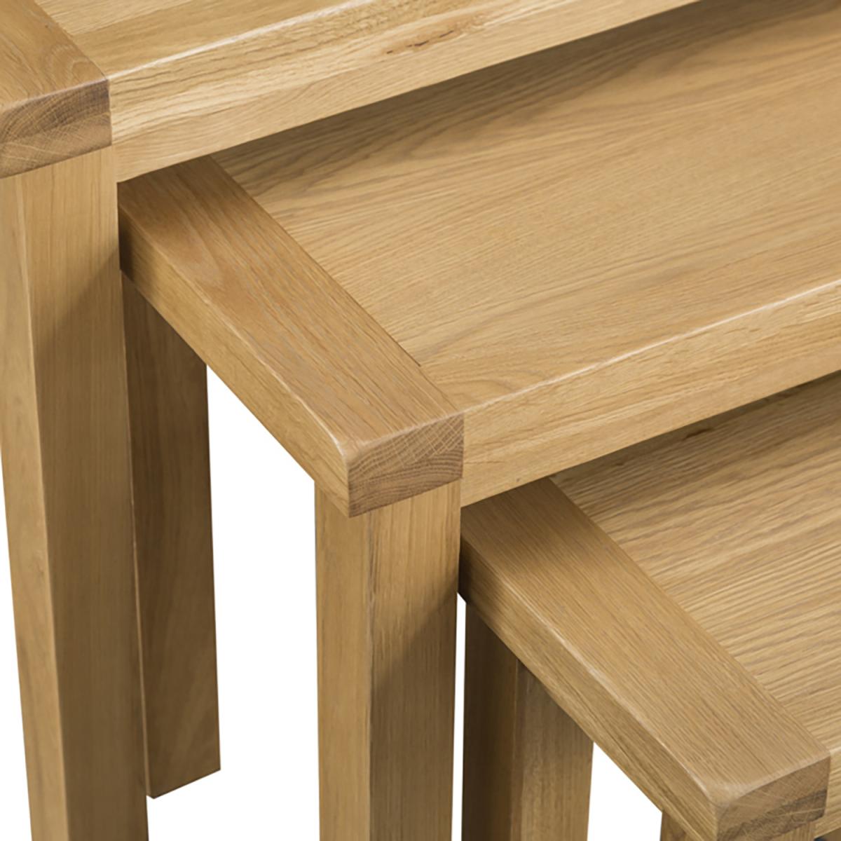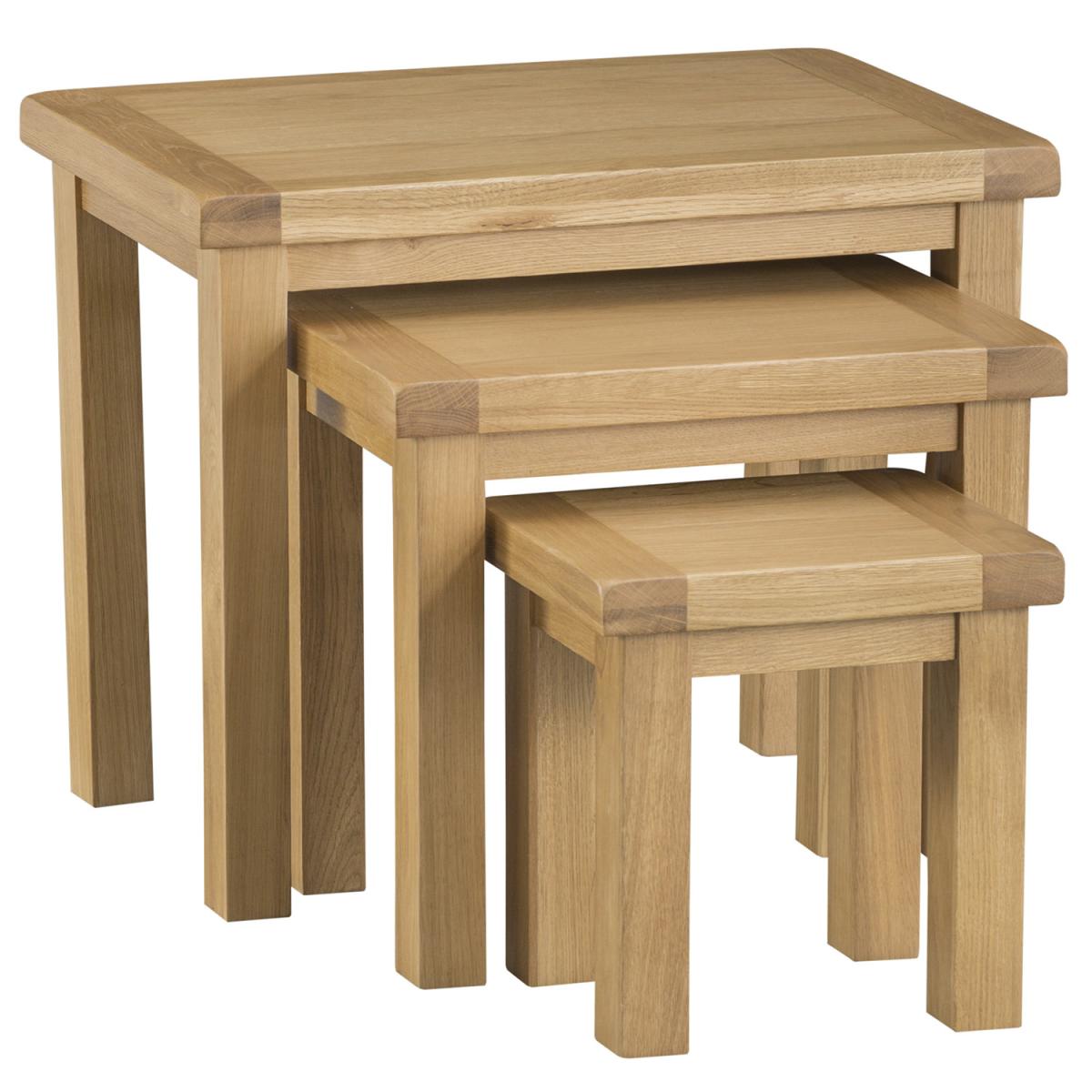 Our new Bisbrooke Country Nest of 3 Tables is designed for those of you who love to add country cosiness to your home with the click of a button. They’re finely crafted and delivered directly to your door, leaving you with nothing to do other than to decide where you want to put them. Not only that but because of the authentic lines of the legs and the rich grain of the oak, you’ll be able to enjoy a Set of Tables that will add character and charm to your home from the moment they arrive.