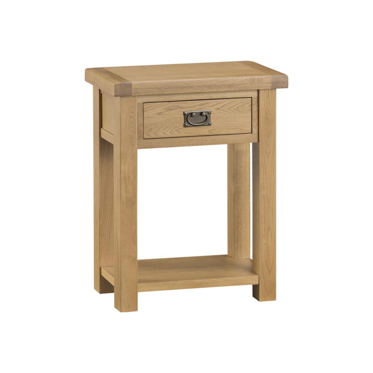 The Bisbrooke Country Telephone Table is a Side Table designed to give you a whole host of options to explore. Thanks to the compact footprint and elegant legs you can use it in the hallway, on the landing or just to adorn a corner of the lounge or dining room. And because of the way the premium quality oak contrasts with the brass effect handle, you can enjoy the country-style look that you’ve been trying to find all these years. Now it’s over to you to explore the rest of the range and treat yourself to a few other matching touches.