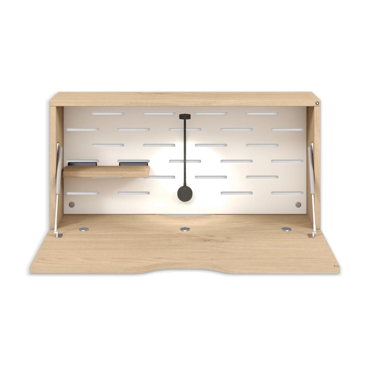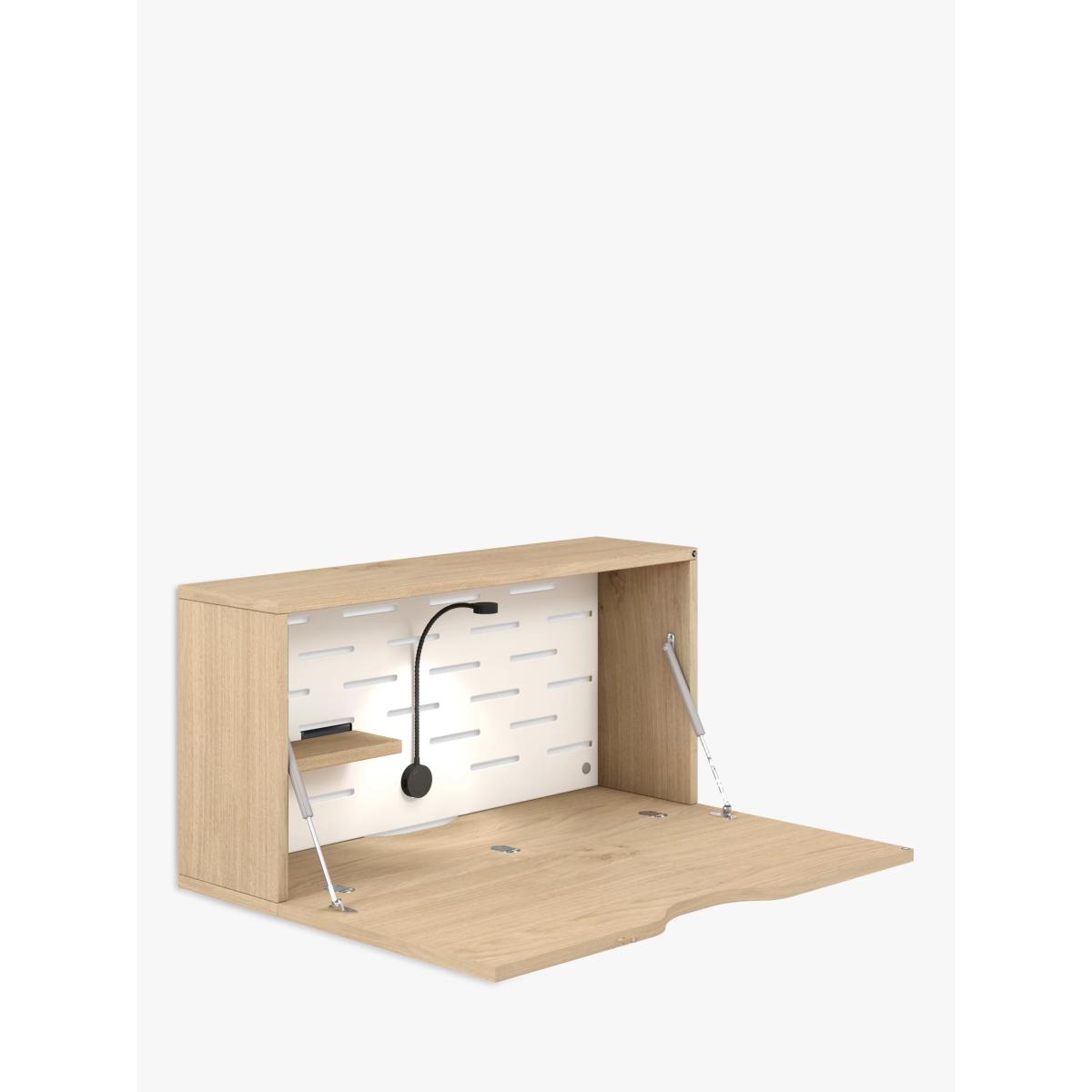 A modern redesign of the traditional bureau, the Hideaway wall desk can fold down or be folded away depending on your needs. Fully equipped with a light and USB port, you're good to go in seconds at any time of the day or night. Once you've finished working, Hideaway's sleek design means that all your work equipment can be tucked neatly away along with the desk. Want to see it first? You may want to see and get a feel for the furniture in one of our shops before ordering. We'll be able to tell you where the range you'd like to view is on display.