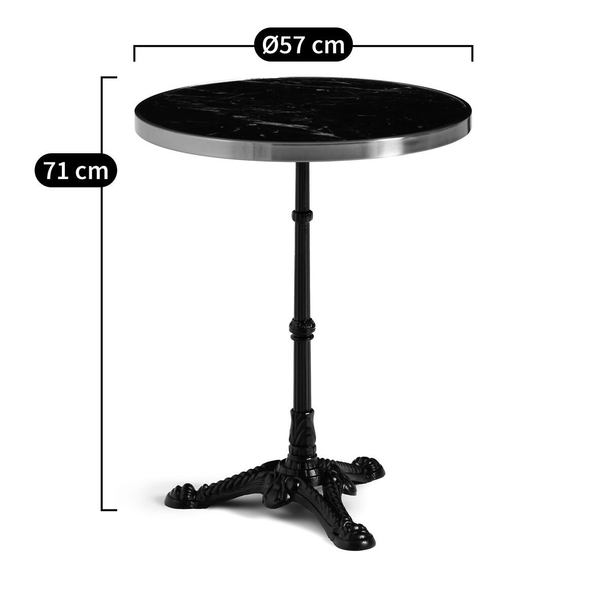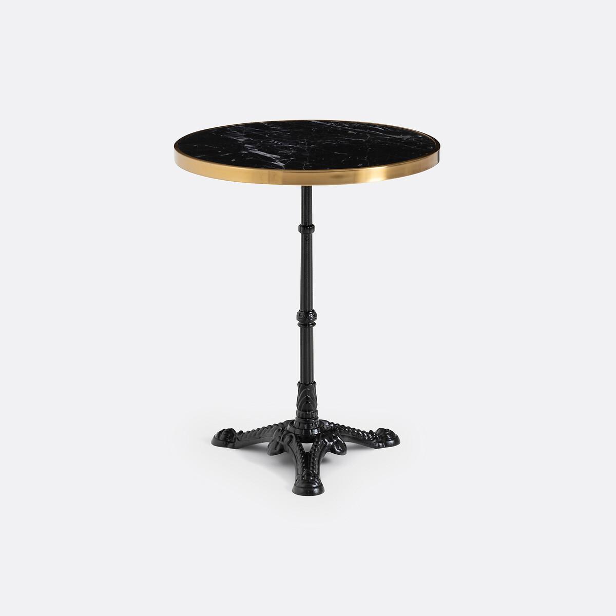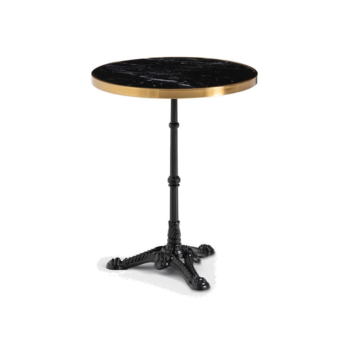 Fancy lunch on the terrace? The Bistro garden table has been inspired by Parisian cafes. All you have to do is choose the menu. Product Details • Black marble top, brass strapping • Base in cast iron, black stained epoxy finish. Dimensions • Diameter: 57cm • Height: 71cm • Weight: 23.6kgDelivery:. Assembly required. Available for home delivery. Dimensions and weight of parcel • L68 x H20 x D68cm • 26.5kg