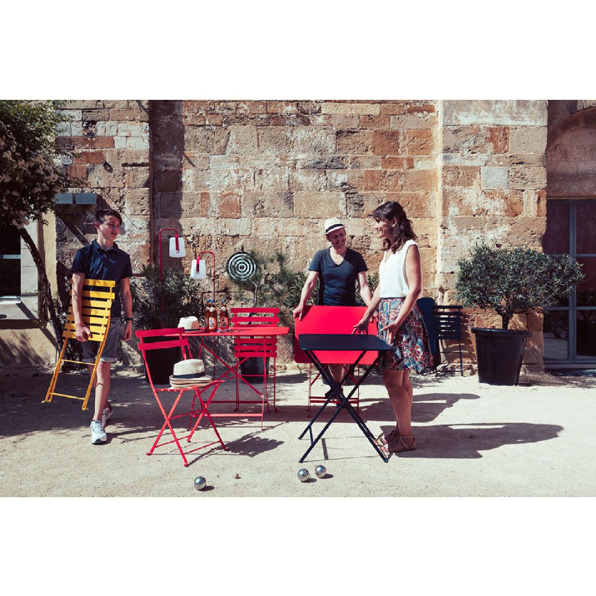 Enter the legend with the Bistro collection: original since 1889! Timeless and legendary, this foldaway furniture has been a hit for over a century. Times Square or Bryant Park in New York have never resisted its “so French” style ». Created at the end of the 19th Century, the foldaway furniture was an immediate success with cafés: solid, lightweight, simple and easy to fold away, it was the star of terraces in Paris in the 1900s! In 1889, Fermob registered a patent for a range of foldaway lacquered steel furniture: the Bistro collection was born. The Bistro table and chair are still made in line with the original models! This collection, which is full of ingenuity, simplicity and fun, has lost nothing of its charm and authenticity. The Bistro range is ideal for a very nice dining area, indoors or out. Kitchen, balcony, veranda or terrace. This square table (71 x 71cm) is available in a host of colours which offer many options to create your own décor. Compact and ideal for tight spaces. In this version, which is specially adapted to intensive, group use, certain elements have been reinforced:.