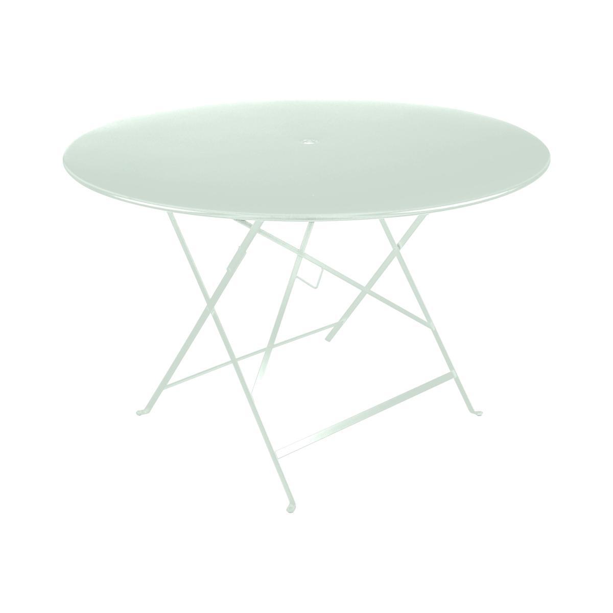 This metal foldable table for 6 to 8 people (Ø 117cm) is equipped with a hole for a parasol in the centre of its top. It is available in a host of colours which offer many options for you to create your own décor. Enter the legend with the Bistro collection: original since 1889! Timeless and legendary, this foldaway furniture has been a hit for over a century. Times Square or Bryant Park in New York have never resisted its “so French” style. Created at the end of the 19th Century, the foldaway furniture was an immediate success with cafés: Solid, lightweight, simple and easy to fold away, it was the star of terraces in Paris in the 1900s! In 1889, Fermob registered a patent for a range of foldaway lacquered steel furniture: the Bistro collection was born. This collection, which is full of ingenuity, simplicity and fun, has lost none of its charm and authenticity. The Bistro range is ideal for a very nice dining area, indoors or out. Kitchen, balcony, veranda, terrace….