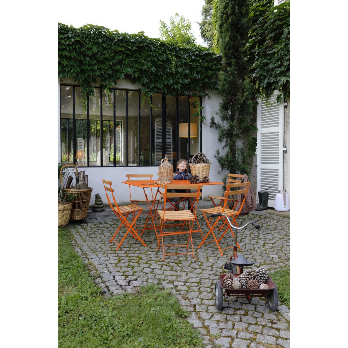Enter the legend with the Bistro collection! Designed from 1889 for café terraces, the iconic folding chair from Fermob has been winning us over for over a century. Times Square or Bryant Park in New York have never resisted its “so French” style. Still made according to the original model, the Bistro chair has benefited since from some innovations in order to make it more economical and practical. Robust, light, simple and quickly stored away, this jolly chair is full of ingenuity and simplicity and has not lost any of its charm or authenticity. The Bistro range is ideal for a very nice dining area, indoors or out. In the kitchen, on the balcony, on the veranda or on a terrace. The folding chair is available in a host of colours which offer many options for your own décor. Compact and ideal for tight spaces. This version combines a painted metal structure with curved slats in Textrol® treated natural beech. Protected against bad weather, the natural wood provides an authentic and warm look which contrasts prettily with the range of modern colours. This chair is equipped with plastic clips for slow and safe folding / unfolding.