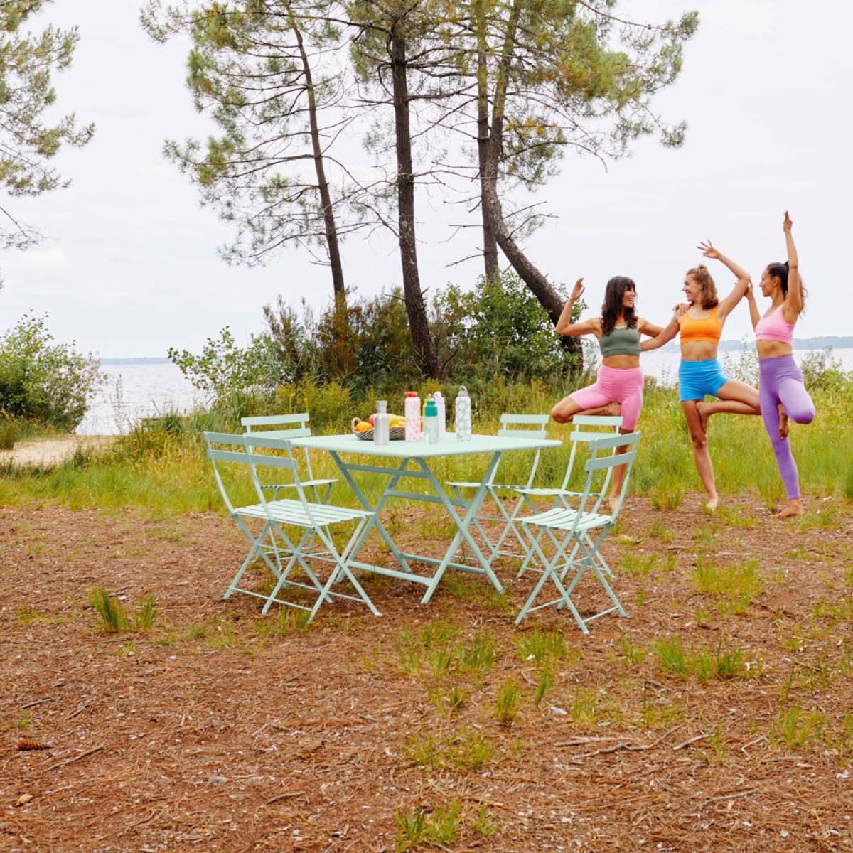 Enter the legend with the Bistro collection: original since 1889! Timeless and legendary, this foldaway furniture has been a hit for over a century. Times Square or Bryant Park in New York have never resisted its “so French” style. Created at the end of the 19th century, the foldaway furniture was an immediate success with cafés: solid, lightweight, simple and easy to fold away, it was the star of terraces in Paris in the 1900s! In 1889, Fermob registered a patent for a range of foldaway lacquered steel furniture: the Bistro collection was born. The Bistro table and chair are still made in line with the original models! This collection, which is full of ingenuity, simplicity and fun, has lost none of its charm and authenticity. The Bistro range is ideal for creating a very nice dining area, indoors or out: In the kitchen, on the balcony, on the veranda or on a terrace. The folding chair is available in a host of colours which offer as many options for creating your own décor. Compact and ideal for tight spaces.