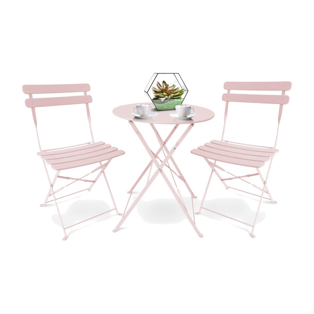 This 3 Piece Bistro Set is perfect for relaxing in the sun. Ideal for gardens, balconies or even indoors, you will be able to move this set to wherever the sun is due to the table and chairs weighing under 5kg each. The set has plastic feet which prevent the chairs from slipping as well as scratching your floor. No assembly is needed to set up these chairs. All you need to do is simply unfold the table and chairs and they're ready for you to use. They fold and unfold in seconds and also lay flat so they can fit into a car boot or be stored away with ease. This Bistro Set is made from powder coated steel which helps prevent corrosion and adds to the overall durability of the set. This means you can use this set both indoors and outdoors. Our chairs can hold up to 120kg so they are more than capable of supporting most people. Chair Size: 42cm x 46cm x 80cm. Chair Weight: 4.6kg. Table Size: 60cm x 71cm. Table Weight: 4.5kg. Carton Dimensions: 61cm x 17cm x 97cm. Carton Weight: 16kg