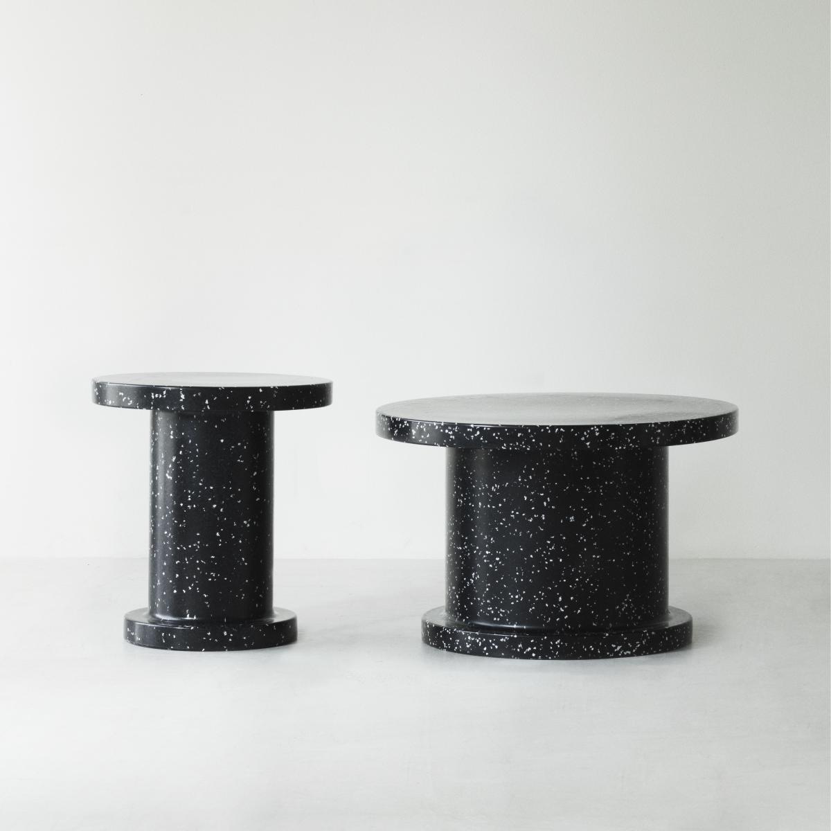 The Bit coffee table proves that it's possible to give a second life to waste to create a new object that's beautiful, useful and sustainable. This plastic Coffee table is made from recycled industrial and household waste. The pixelated surface is made up of a multitude of tiny little pieces of plastic. Cheerful and subtly colored, this plastic material features irregular speckled patterns that give it a mineral appearance, reminiscent of terrazzo or Granite. Each Bit coffee table is unique, with color and pattern varying slightly from one piece to another.