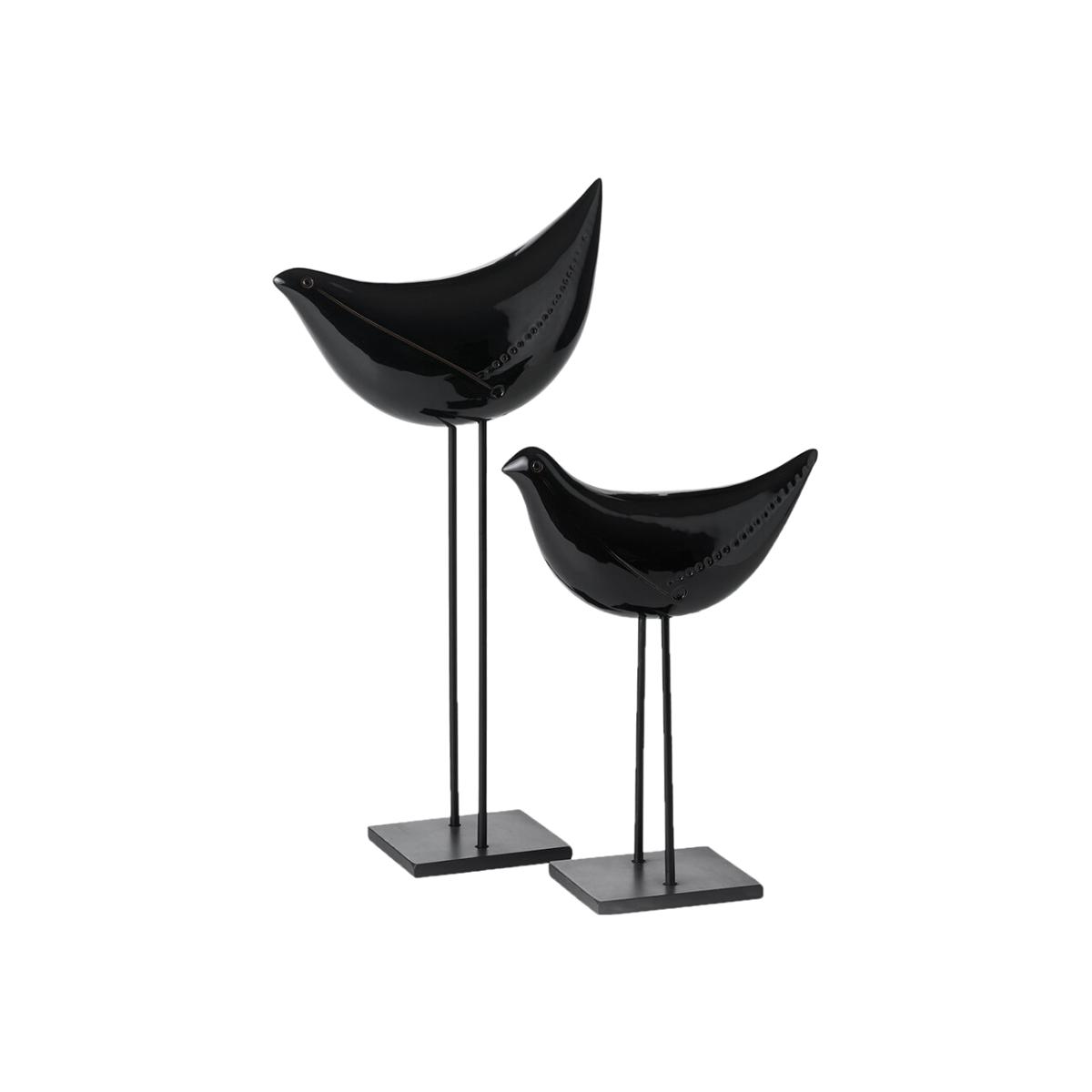 I love this bird set because of its sleek black finish and modern silhouette, which can easily add a touch of contemporary elegance to both classic and minimalist interiors. They work particularly well on side tables, open shelving, or mantels, where they can stand out as statement pieces. To style them effectively, consider pairing with muted or monochrome decor to let the bold design shine, or use them to contrast textured materials like wood or plush textiles. Practical tip: group them with smaller decorative items or greenery for a layered, curated look that adds visual interest without cluttering the space.