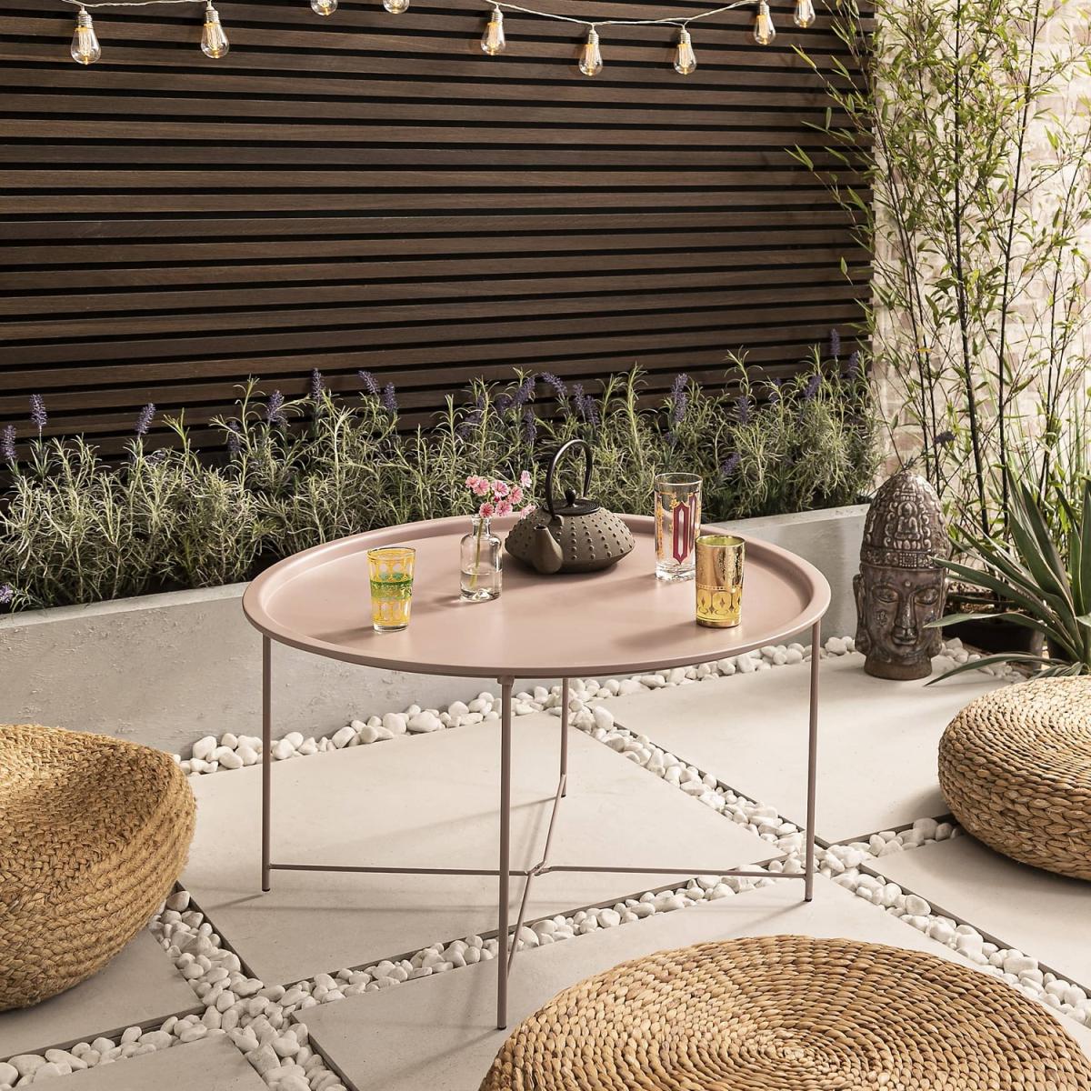 Our charming Bjarni Outdoor Table brings all the summer vibes to your outside space. Flaunting a sweet pastel shade and minimal silhouette, Bjarni modernises and prettifies patios, gardens and balconies. From morning coffees to evening cocktails, Bjarni is essential for summer socialising. In a beautiful blush pink, the garden table creates a romantic summer feel for all occasions. Combine this with its sleek curves and slender legs, and you have a chic, contemporary and oh-so-cute outdoor space. Complement the tables hip aesthetic with wicker accessories such as beanies or chairs for an authentic, homely vibe. Bliss. Please note: This is an occasional-use table. We recommend covering it when not in use or protecting it from direct exposure to rain.