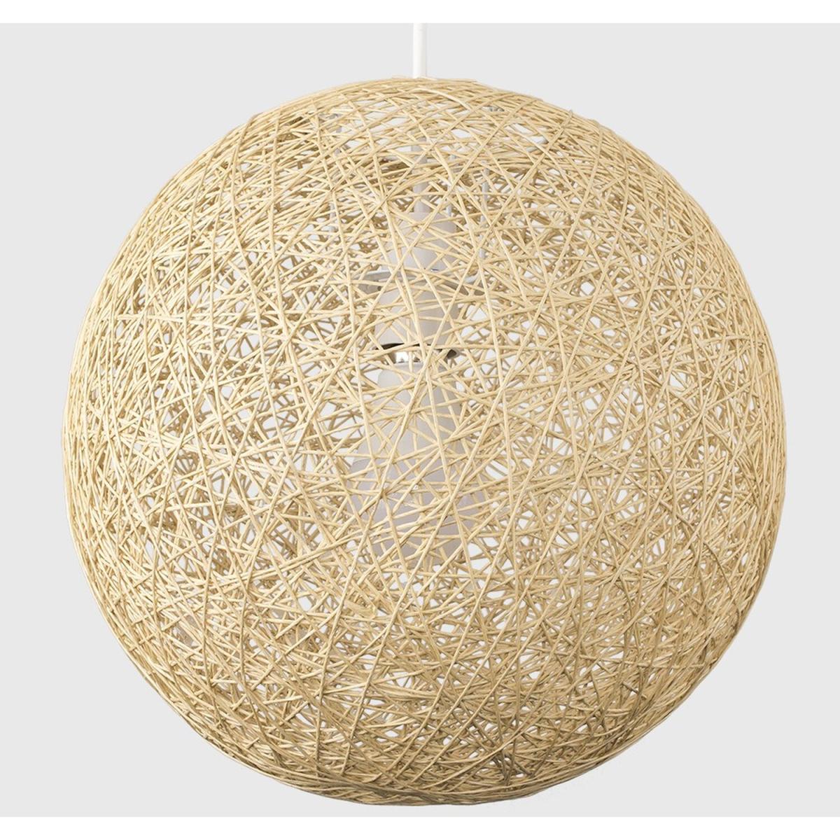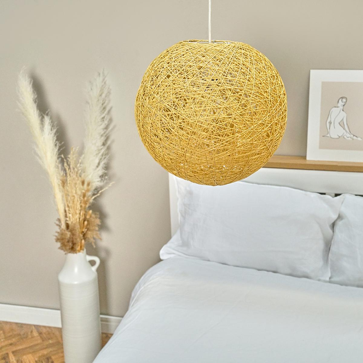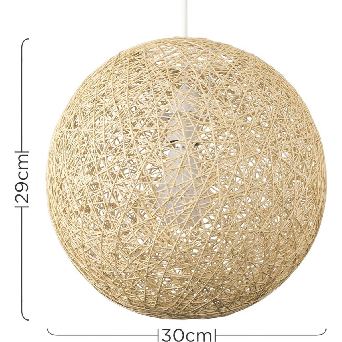 This modern ceiling pendant lampshade features a wonderful round globe design, with a wicker lattice rattan design that allows the light to filter through beautifully, creating a stunning ambient glow. With a stunning cream finish. Perfect for living rooms, bedrooms, hallways and dining areas. 1 x 40w BC B22 GLS Bulb Is Required - Not Supplied.