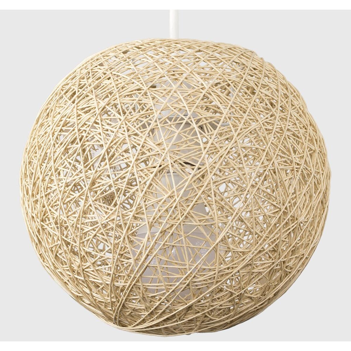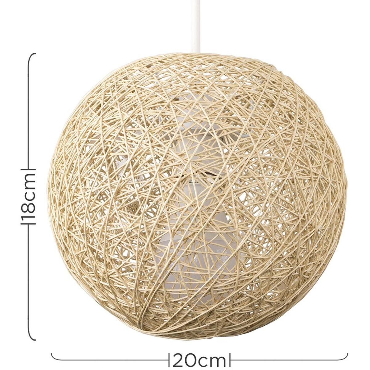 This modern ceiling pendant lampshade features a wonderful round globe design, with a wicker lattice rattan design that allows the light to filter through beautifully, creating a stunning ambient glow. With a stunning cream finish. Perfect for living rooms, bedrooms, hallways and dining areas. 1 x 40w BC B22 GLS Bulb Is Required - Not Supplied.