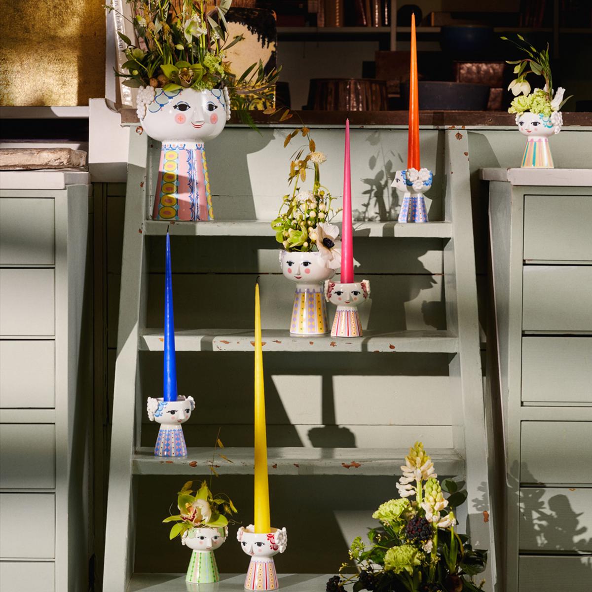 The Eva candlestick from Bjørn Wiinblad is a beautiful, retro-inspired candlestick made of ceramic. The candlestick bears the Bjørn Wiinblad signature design of a calm female face — a perfect aesthetic for the windowsill or dining table. The candlestick is a striking tribute to women with strong personalities and the will to persevere.