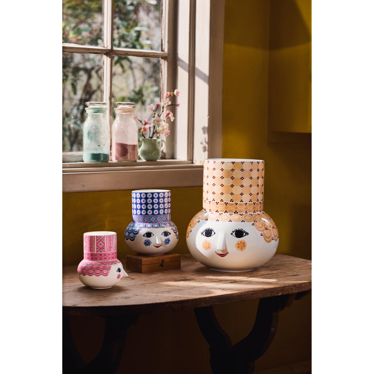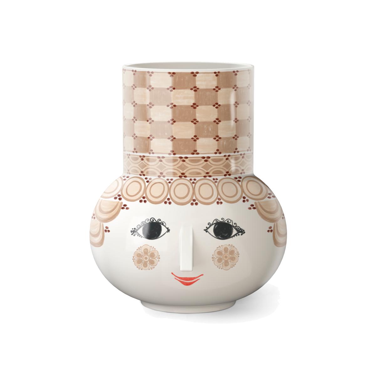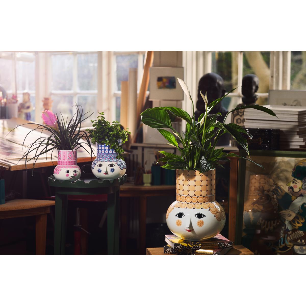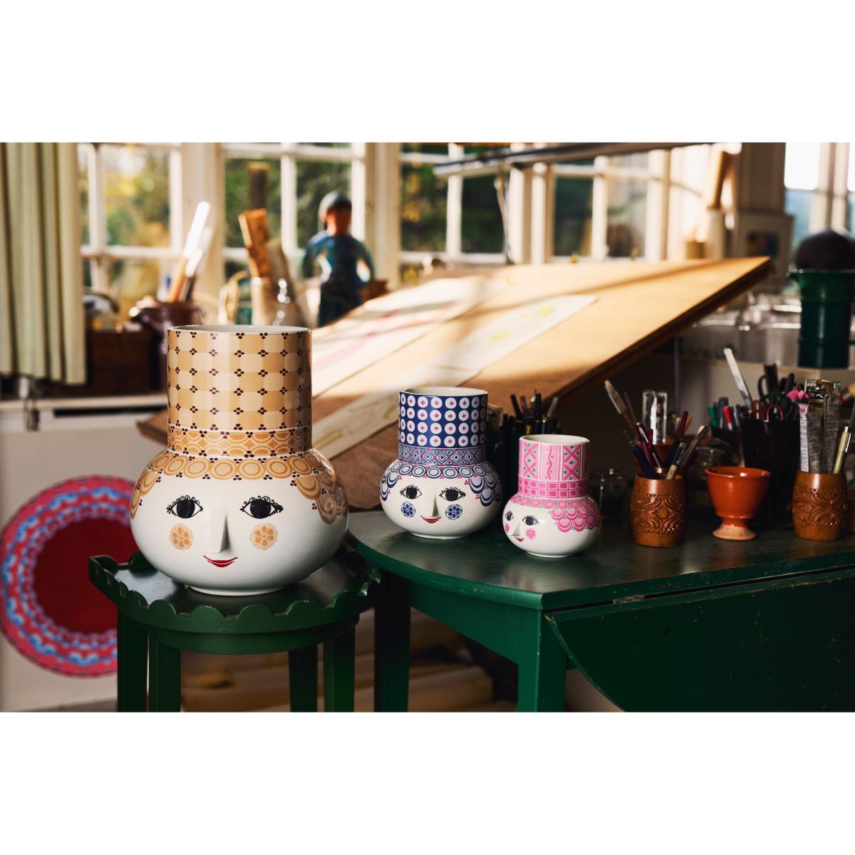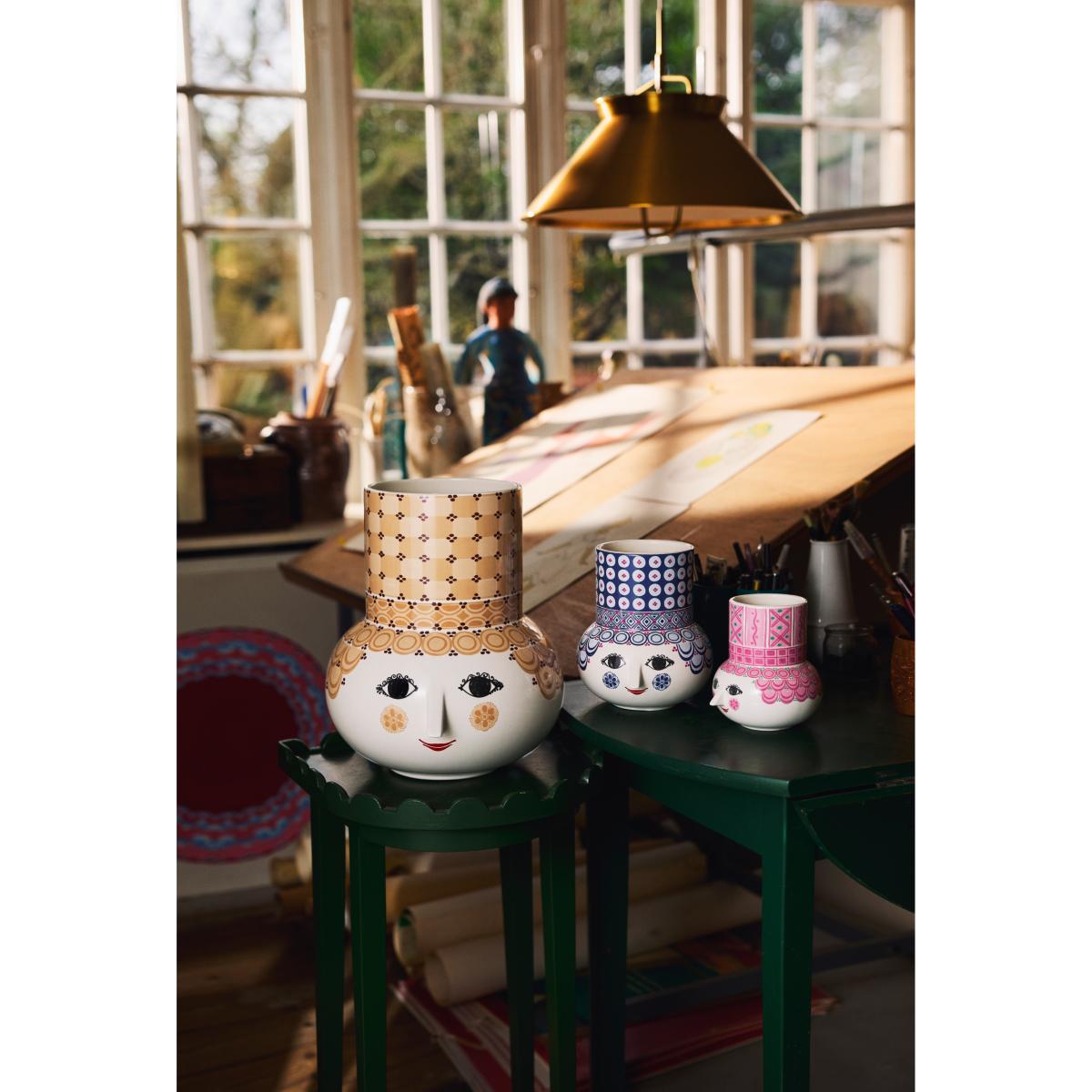 The Olga vase 35 cm by Bjørn Wiinblad is an elegant ceramic vase that continues Wiinblad's playful design tradition. The classic face and almond-shaped eyes enhance the artistic expression, while the generous height of 35 cm makes it perfect for larger bouquets and decorative arrangements.
