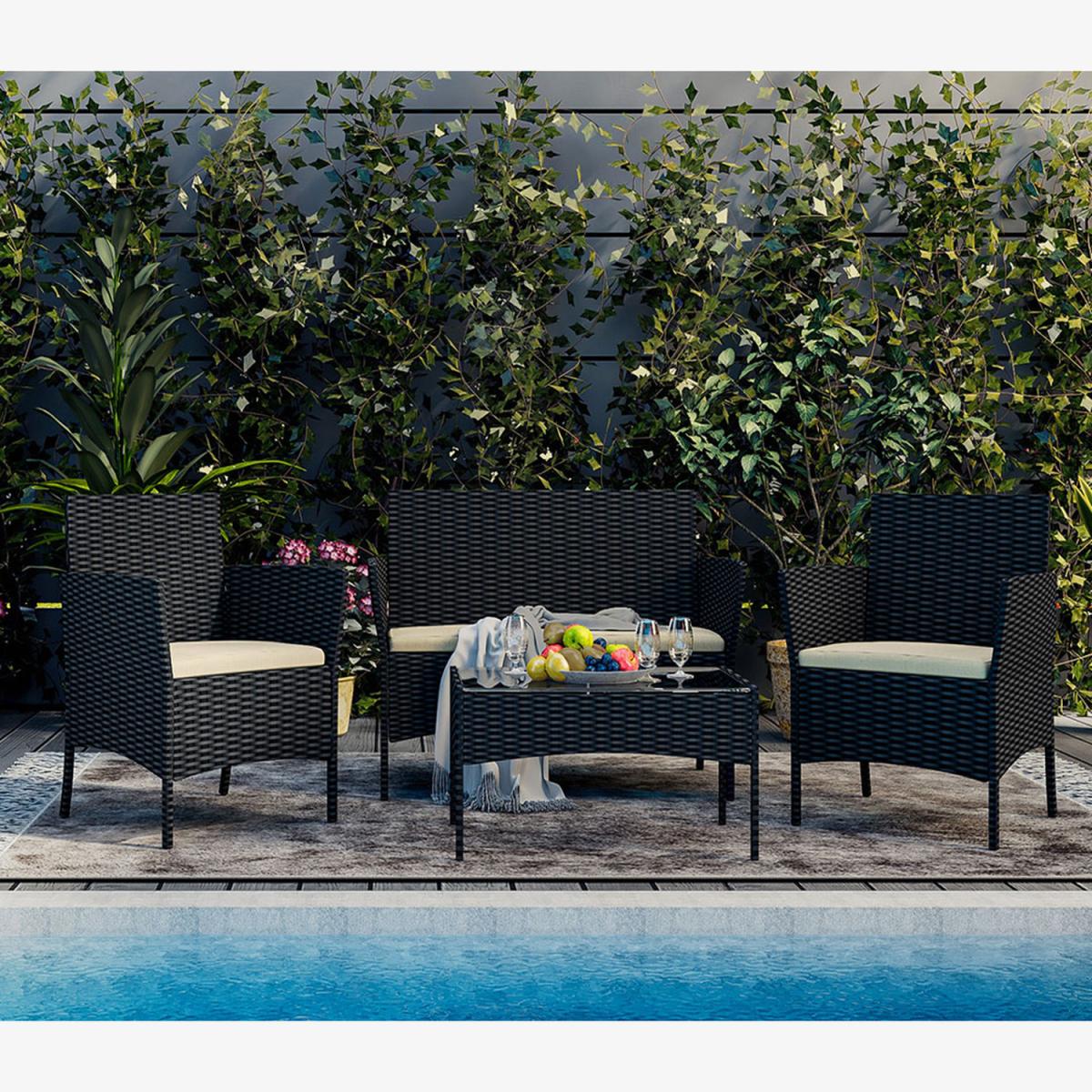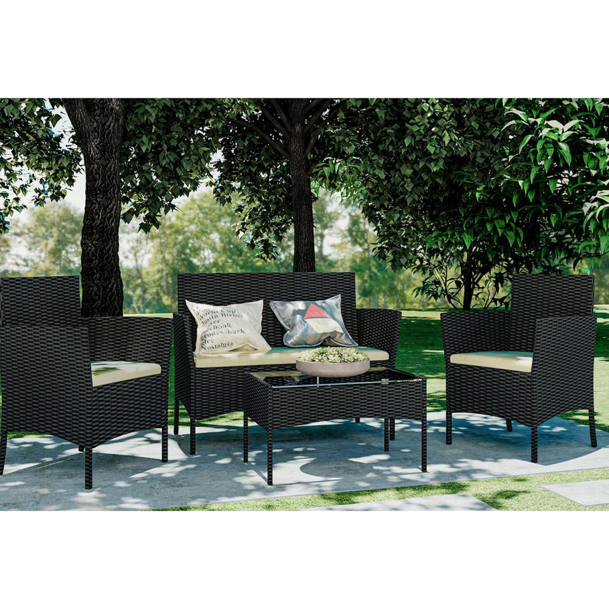 Black 4 PCS Rattan Garden Furniture Set - Black / Cover