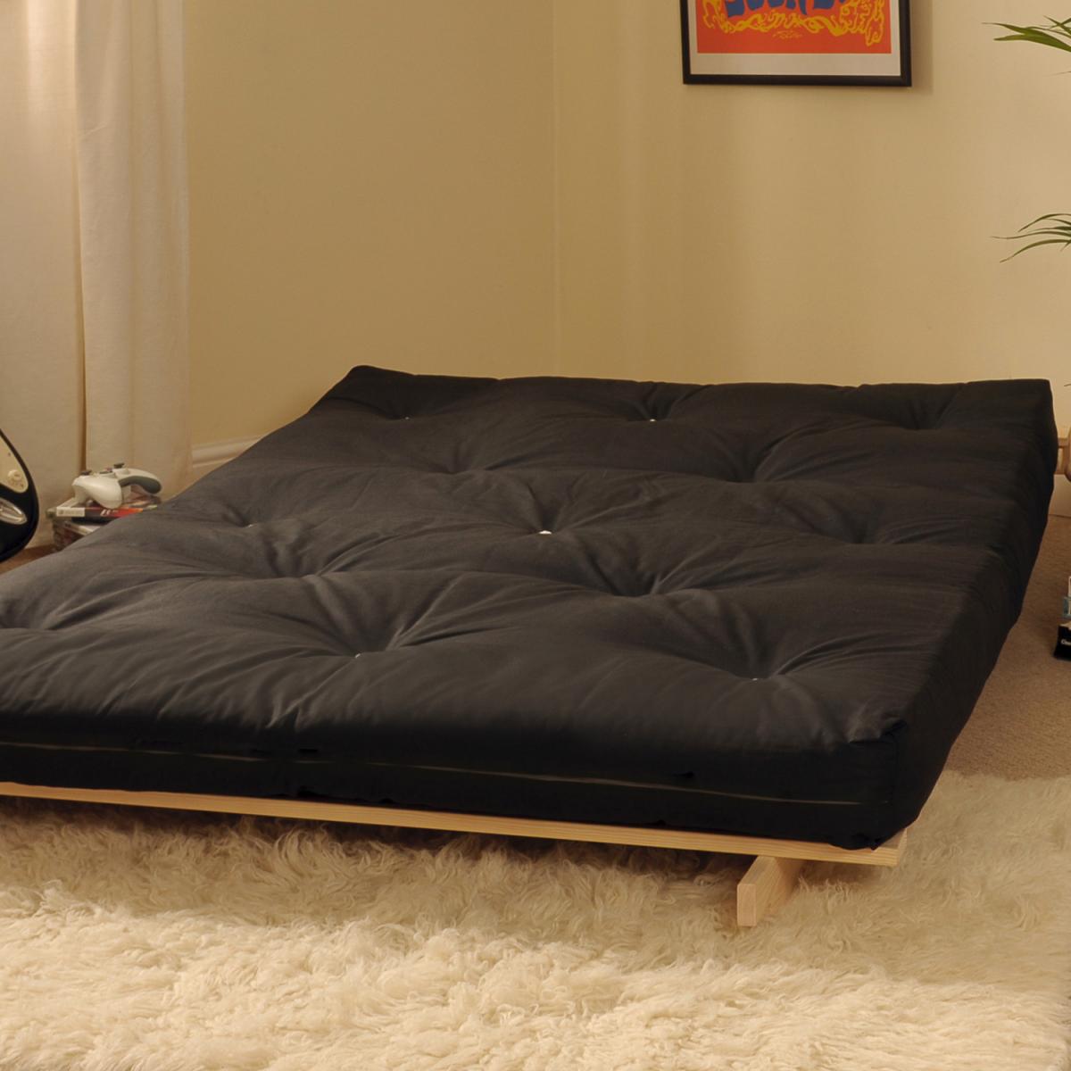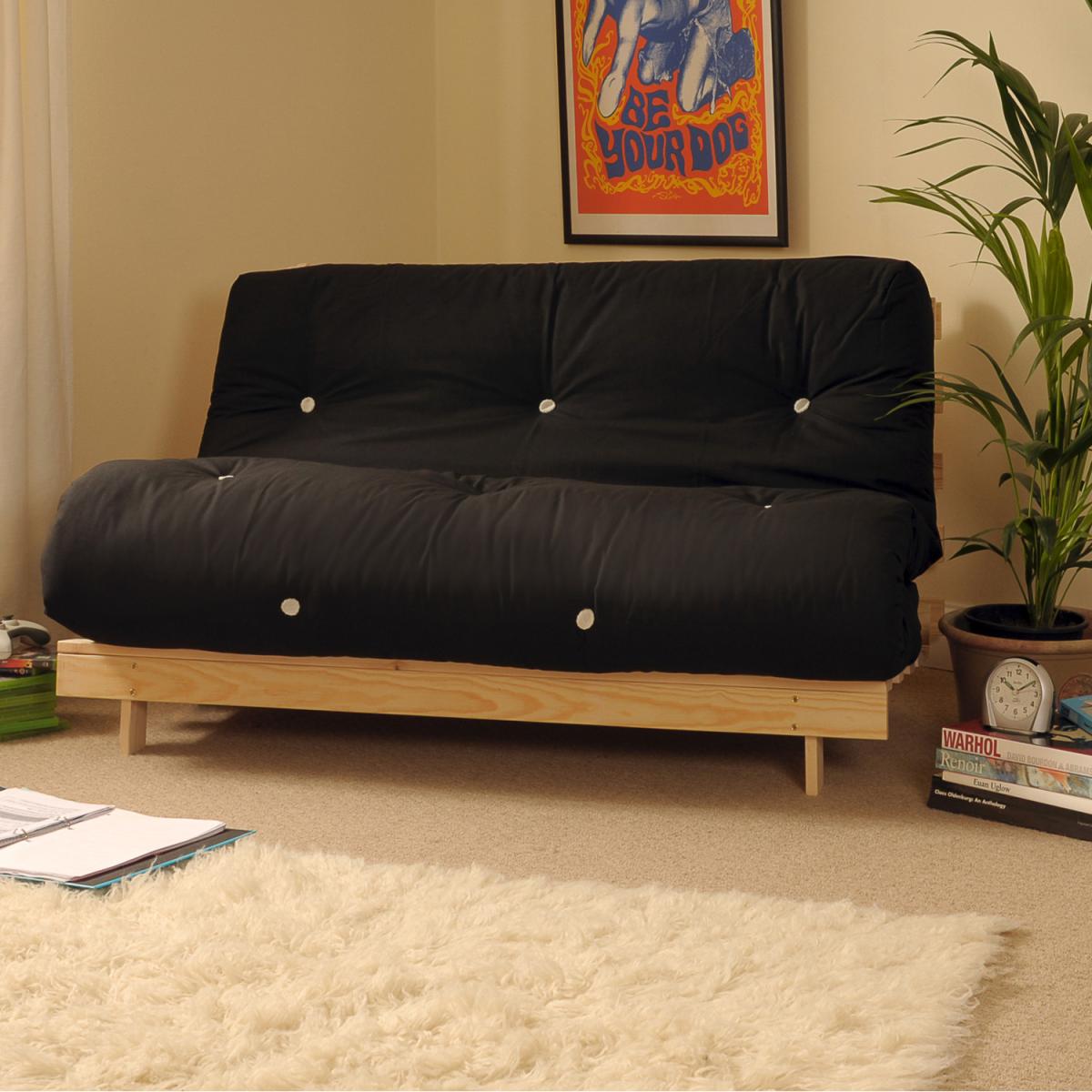This great value, easy to use futon is a great addition to any room. A comfortable, compact solution for that unexpected guest. The base is a solid, wooden pine frame. It is sturdy, practical and can be painted easily, to match any room. The luxury mattress is made from a thick quality woven filling with a non-removable, 100% cotton drill cover. With luxury daisy tufts. In seconds the futon goes from a comfortable 2 seater sofa to a 4ft Small Double bed, and vice versa. This futon is ideal for any occasion, use a practical sofa or a comfy bed.