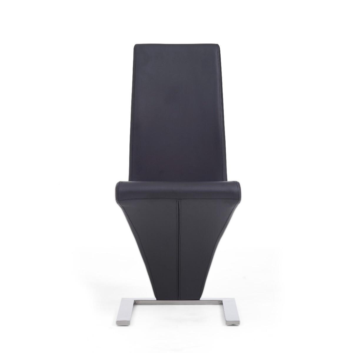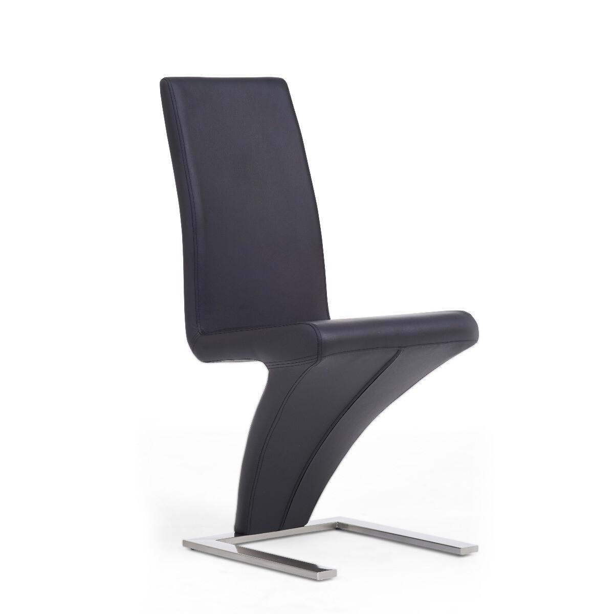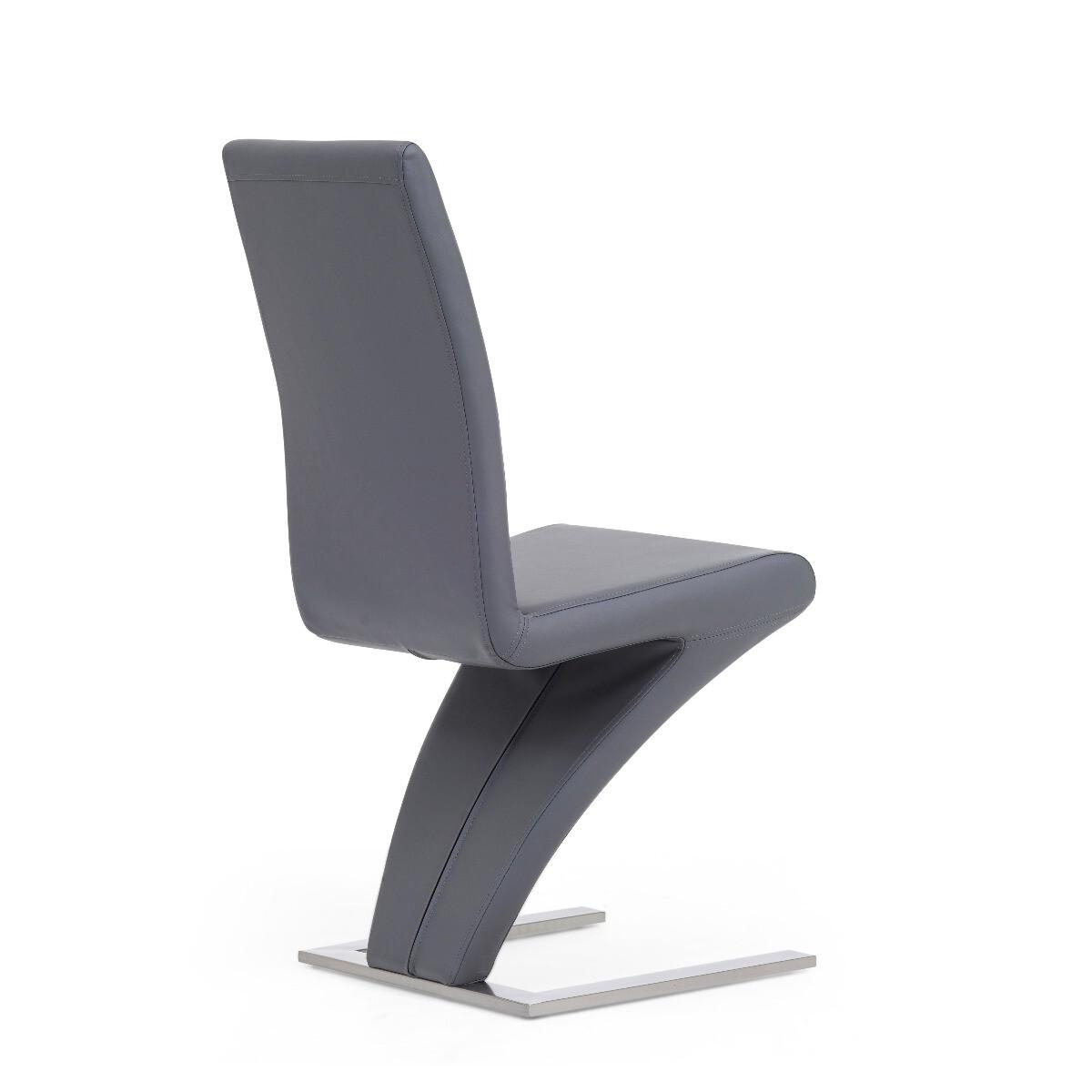 The Aldo Faux Leather Dining Chairs feature a unique Z design, smooth faux leather and brushed metal feet.
