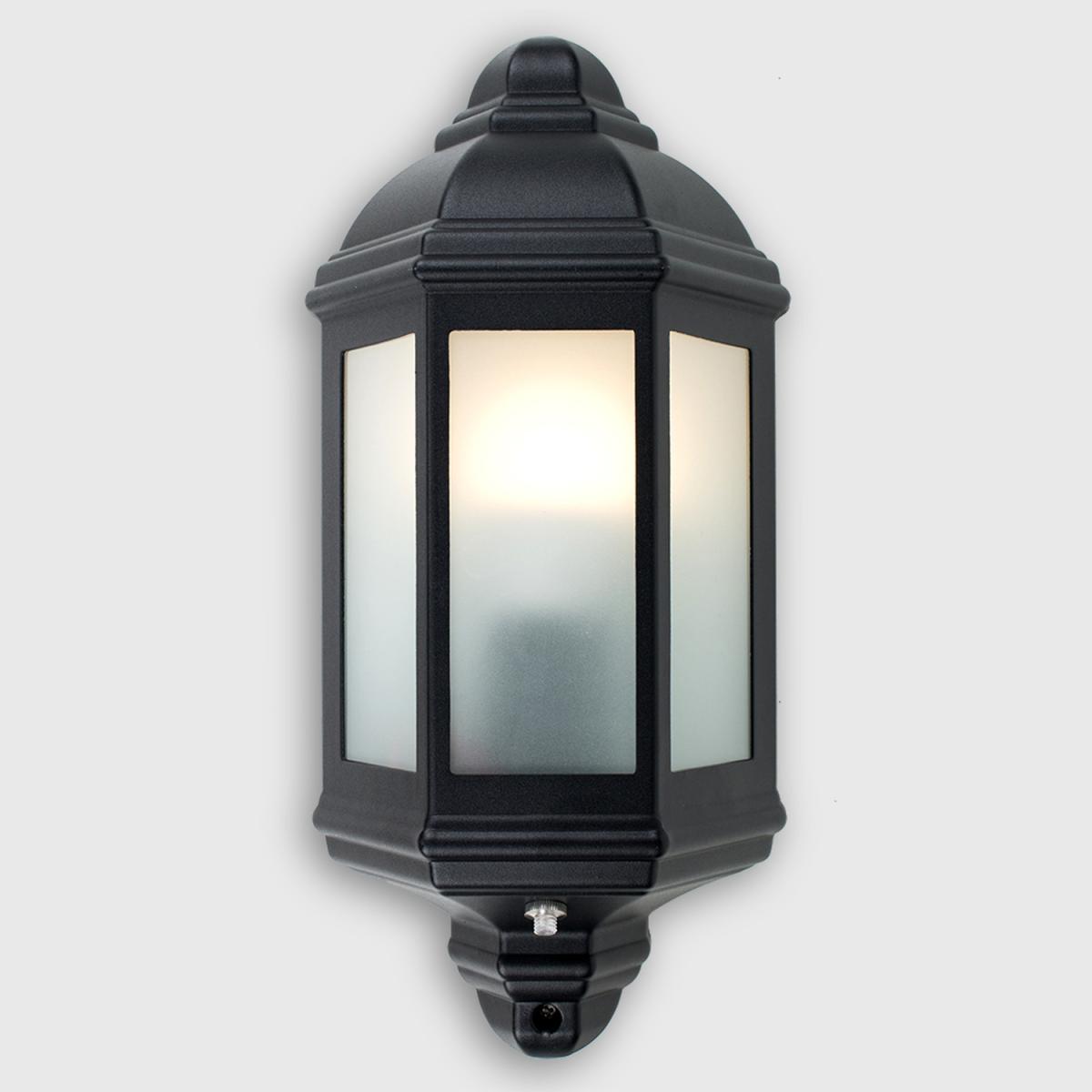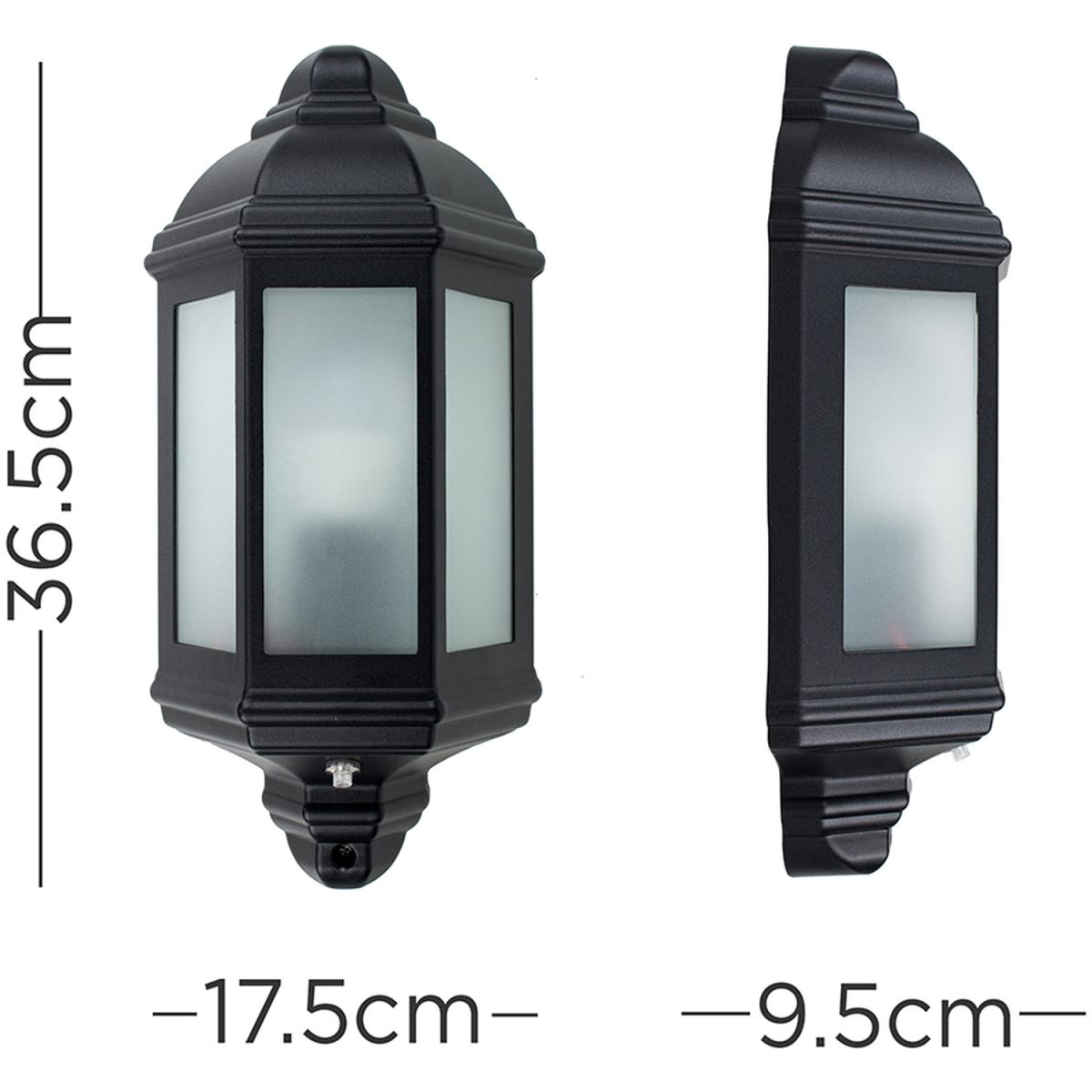 This stylish, wall mounted, 3-panel outdoor light has a stunning traditional Victorian lantern design and is ideal for lighting gardens, paths, garages, patios, courtyards, decorative porches and driveways - as well as providing extra security for the home and peace of mind. The wall-mounted outdoor flush light comes in a sturdy and weatherproof durable aluminium design with a matt black finish and frosted glass panels. This robust, illuminating external light is IP44 Rated and is fully certified for outdoor installation. Equipped with an integrated dusk til dawn sensor, which automatically switches on when it goes dark, and switches back off when it goes light.