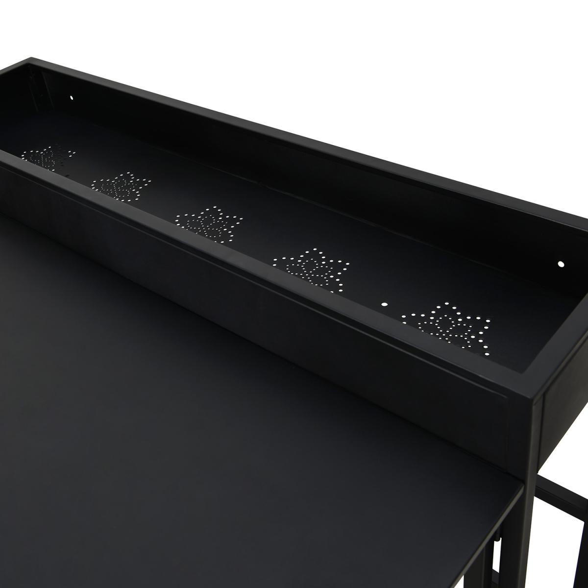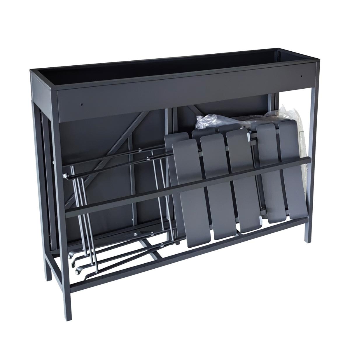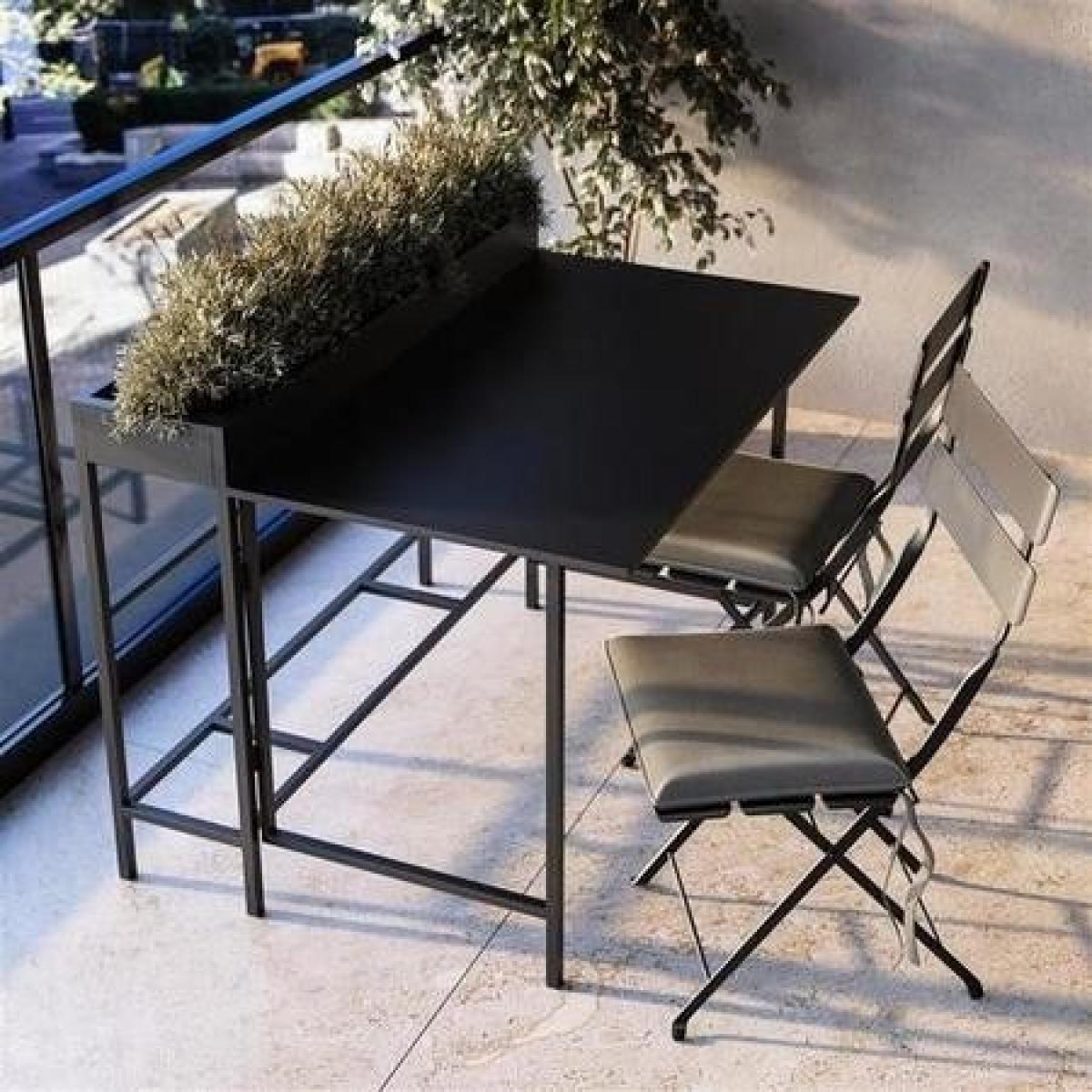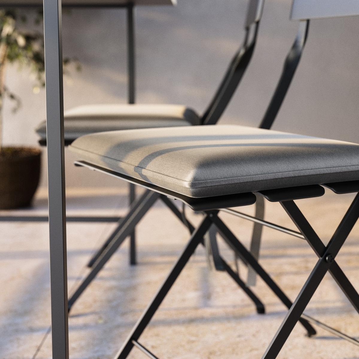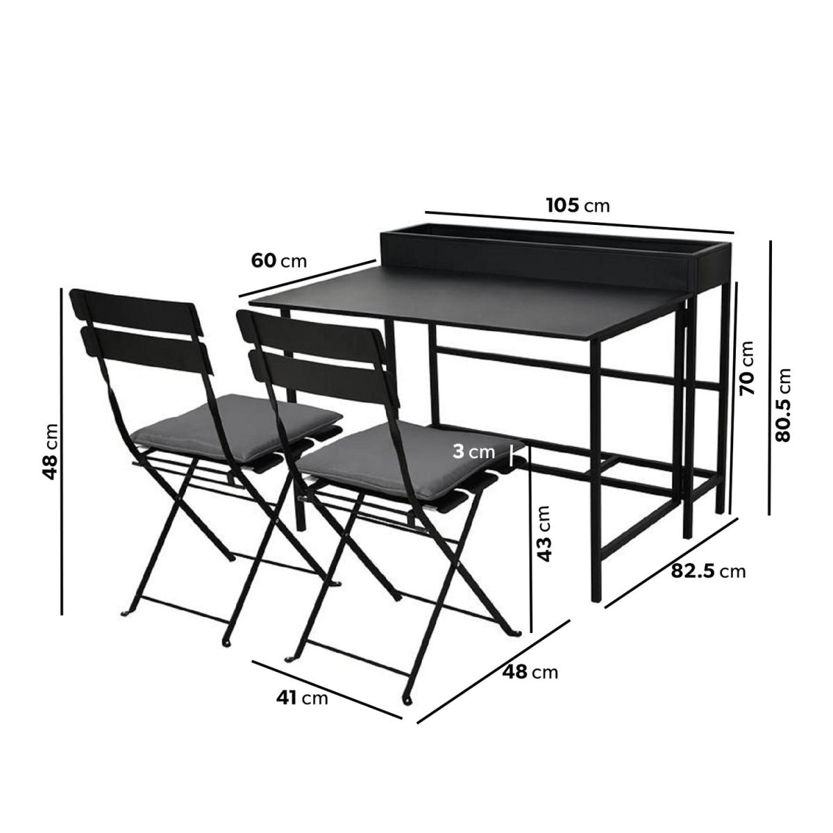 A rust-resistant powder-coated steel build for year-round outdoor use. Fold down the tabletop when not in use and store the foldable chairs neatly within for a clutter-free balcony. Add a touch of greenery with built-in space for growing fresh herbs, flowers, and decorative plants. The Fully Waterproof Cover offers extra protection from rain, UV rays, and dust. The sleek black finish complements any contemporary outdoor décor and other garden furniture. Maximise your outdoor space with this stylish and practical 3-piece balcony bistro set and transform it into a cosy retreat. Designed for compact living, this sleek, space-saving garden furniture set features a sturdy, weather-resistant aluminium table with a built-in planter, perfect for adding greenery to your balcony or patio. The set includes two folding chairs that can easily be stored under the table when not in use, making it ideal for urban homes, apartments, and compact outdoor spaces. It even includes a waterproof cover to protect your furniture all year round. Plus, no assembly is needed either, so you can use it right away.