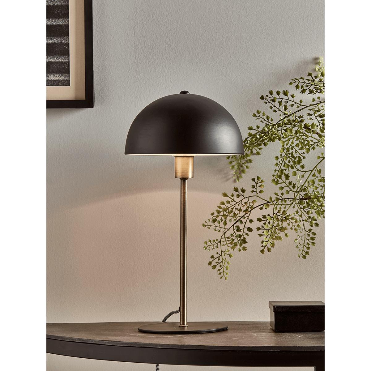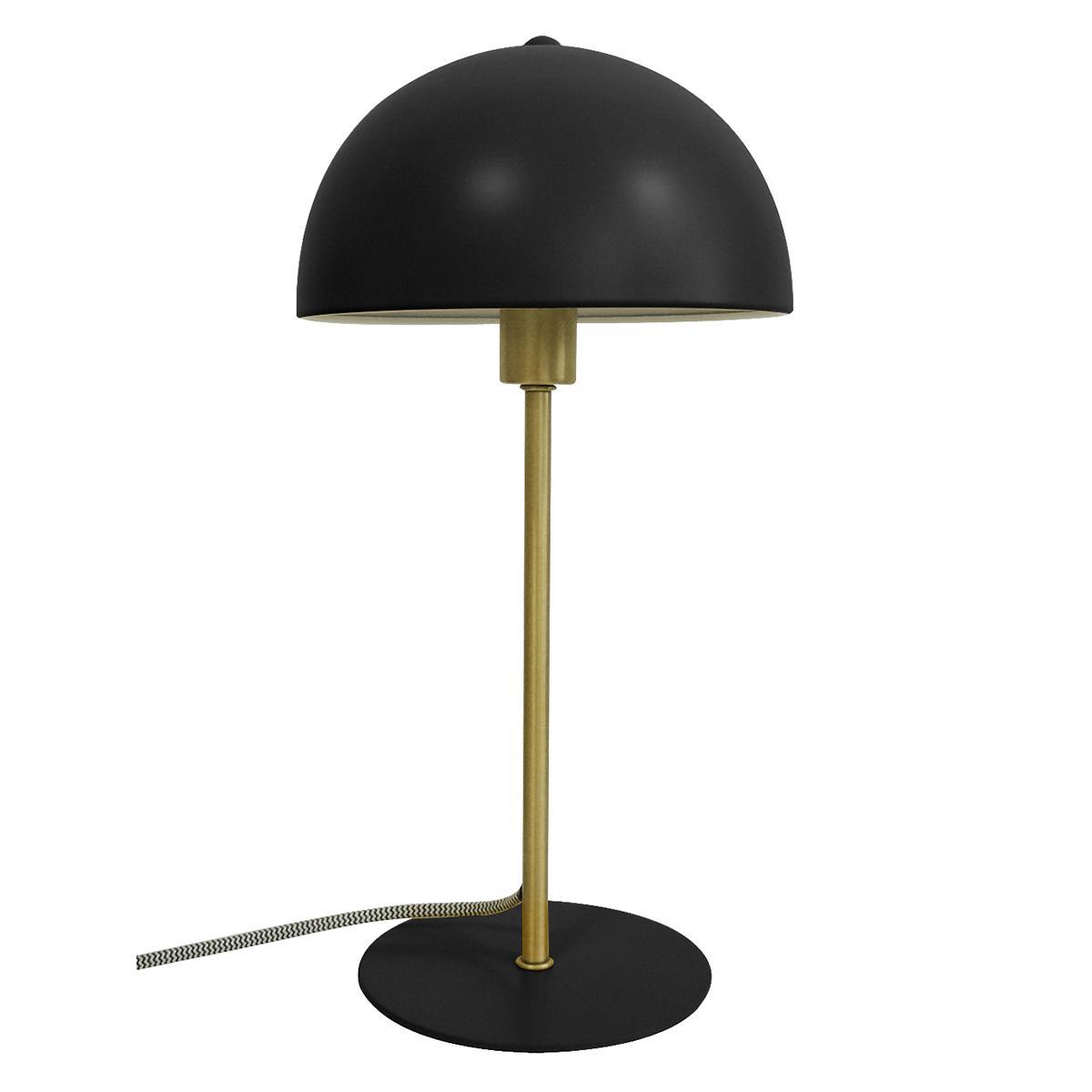 Contemporary in shape and style, our dome shaped table lamp features a metal shade with a matte black finish, flat, circular base and slim brushed brass stem. Place on a console or side table to add light to your living space.