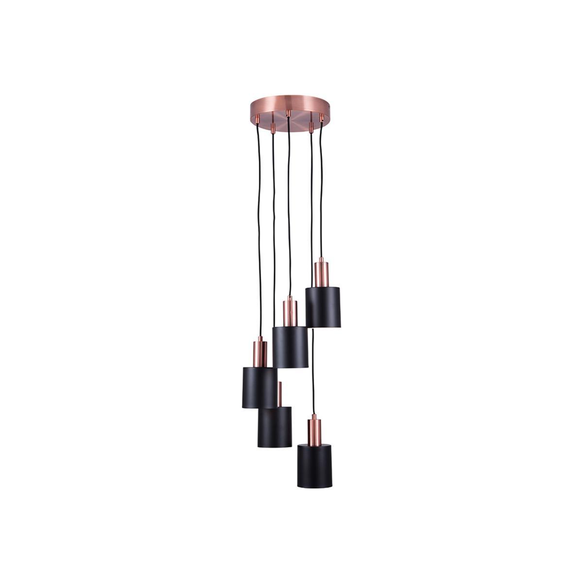 Black and Copper Contrast 5 Cluster Drop Pendant Ceiling Light