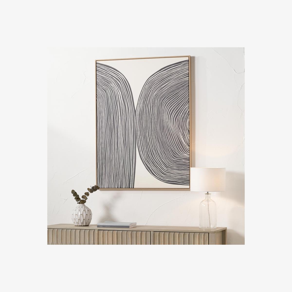 I love this piece for its bold, modern aesthetic and versatility. The abstract lines in black and cream bring a sophisticated yet understated vibe, making it ideal for contemporary, minimalist, or even eclectic interiors. It works well above a console table, in a living room, or as part of a gallery wall for added visual interest. For styling tips, pair it with monochrome accessories or textured ceramics to keep the focus on the artwork. To really make it pop, consider surrounding it with subtle lighting or placing it against neutral wall colours - it’s a statement piece that will add depth and intrigue to any room.