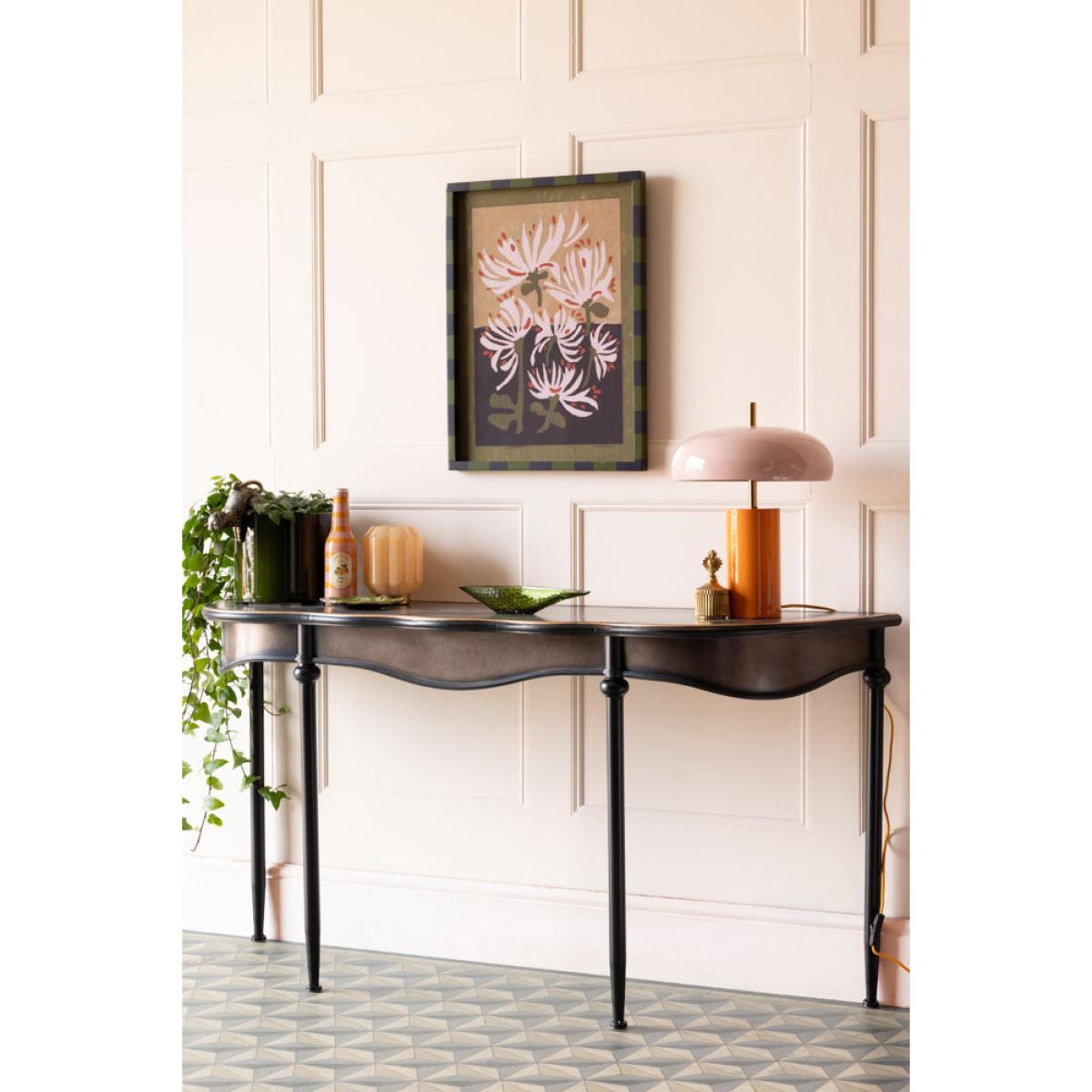 Say hello to timeless elegance – the Black & Gold Antiqued-Style Console Table. This slim console table is all about sophisticated style with a little extra sparkle. Finished in a rich, inky black with brushed gold detailing, this table for hallway is giving old-school glamour that meets contemporary cool. The kind of unique and quirky home furniture that looks like it belongs in a boutique hotel or a chic little townhouse. Perfect for dressing up your hallway, adding a touch of drama to your living room, or making a seriously stylish statement in your bedroom. Pop whatever you like on top and let this stunner do the rest.- Black & Gold Antiqued-Style Console Table - Measures: W122cm x H76cm x H50cm - Material: Iron