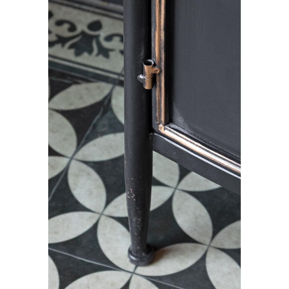 I love this side cabinet for its versatile, statement-making style that adds a touch of vintage charm paired with contemporary edge. The black and gold antiqued finish makes it particularly well-suited for eclectic or industrial interiors, but it can also elevate darker, more dramatic schemes in living rooms, hallways, or bedrooms. To style it effectively, consider layering with a sleek table lamp or statement decorative objects on top, and utilise the inside for organising essentials or displaying favourite pieces. Its slim profile and elegant details make it both functional and a real visual anchor, adding personality while remaining practical.