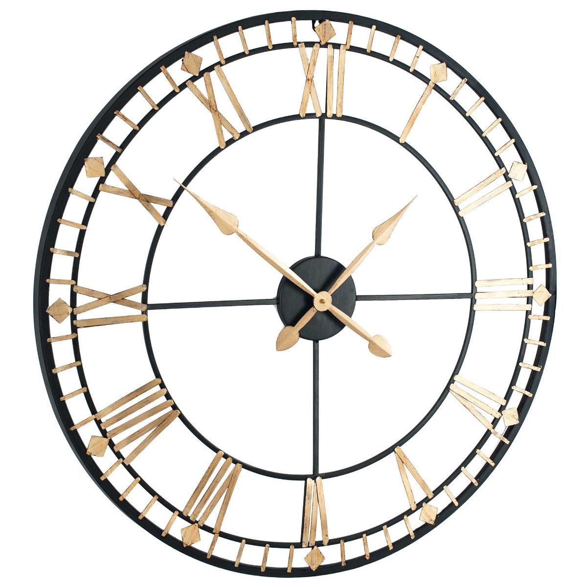 Design. Perfect for those who want to introduce an indu. S. Trial inspired feature into their home. The Black and Gold clock has a skeleton style design which nods to vintage décor. With. Its. Large size. , this piece will make a bold statement in your kitchen, dining room or living room. Perfect for a modern or traditional home, this clock will be a crowd pleaser among all lovers of black and gold décor.