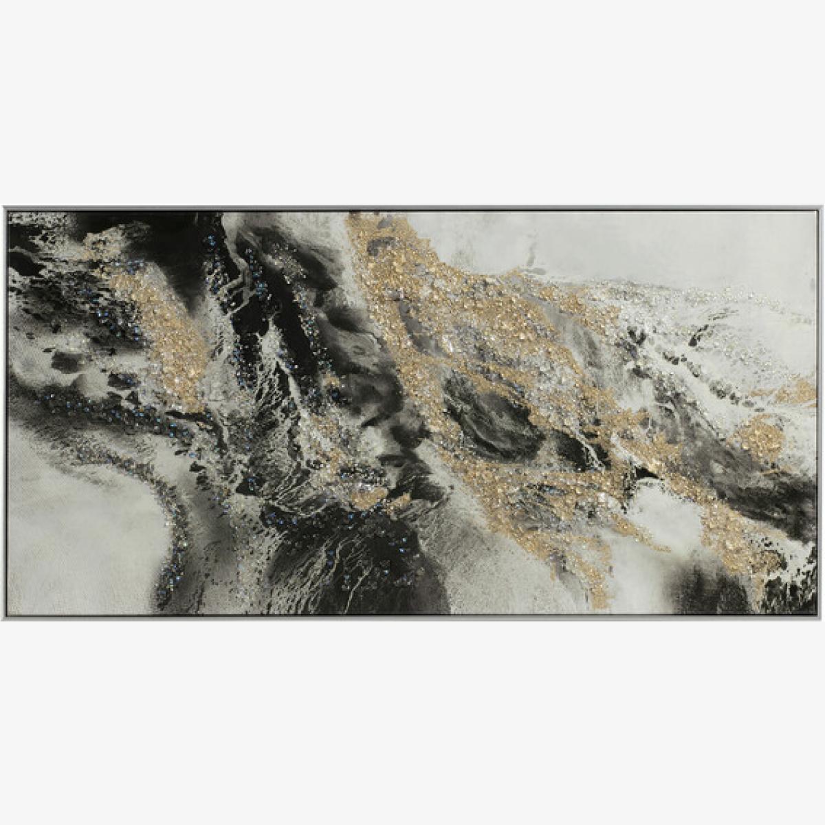 I love how the black and gold jewels add a luxurious touch to this artwork, making it a real statement piece. It works particularly well in modern or contemporary interiors, especially when paired with monochrome or metallic accents. For practical styling, hang it in a living room or hallway to anchor a minimal colour scheme, and consider placing it above a sleek sideboard or sofa to maximise its visual impact. Keep surrounding decor simple to let the artwork shine, and consider using warm lighting to highlight its shimmering gold details for added drama.
