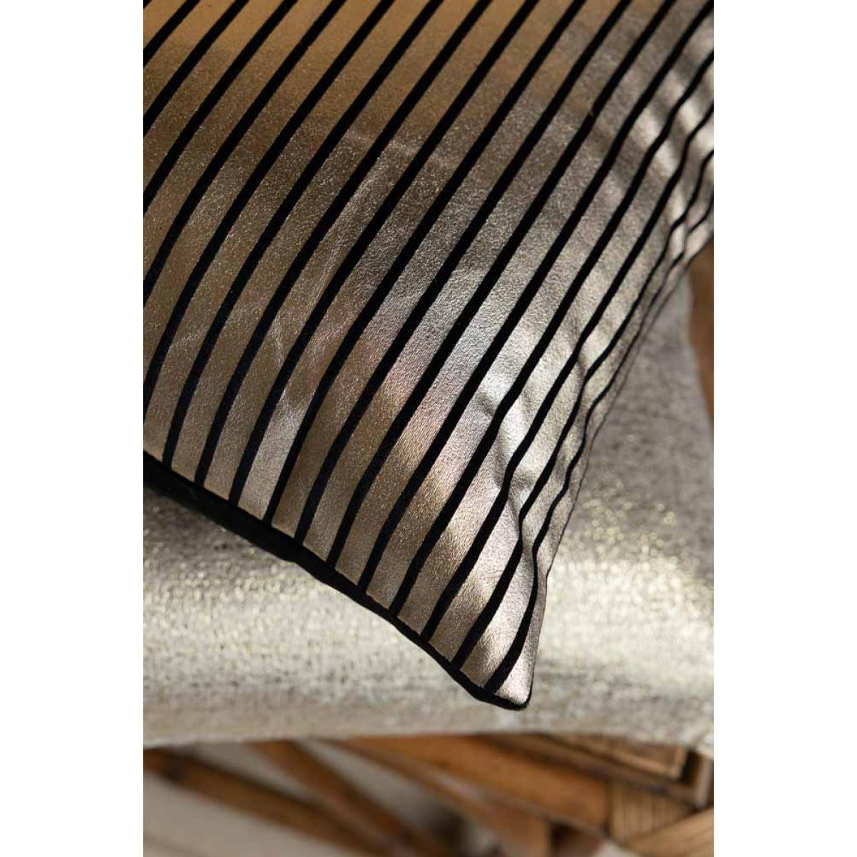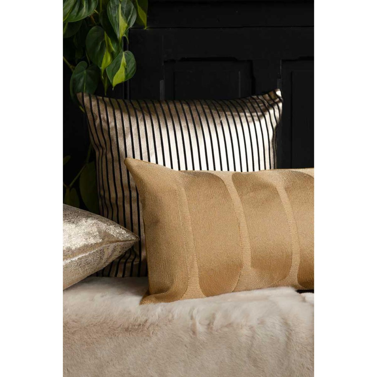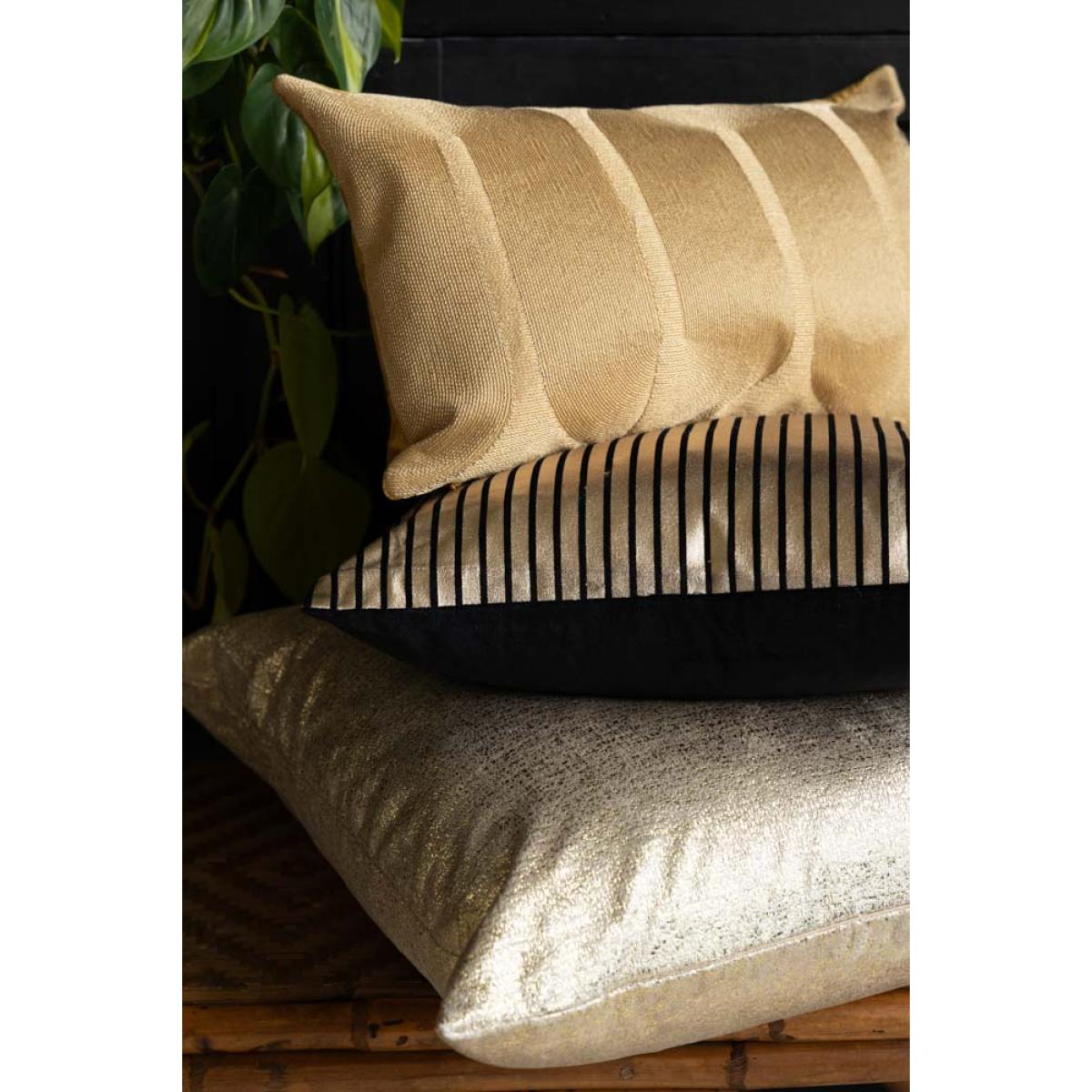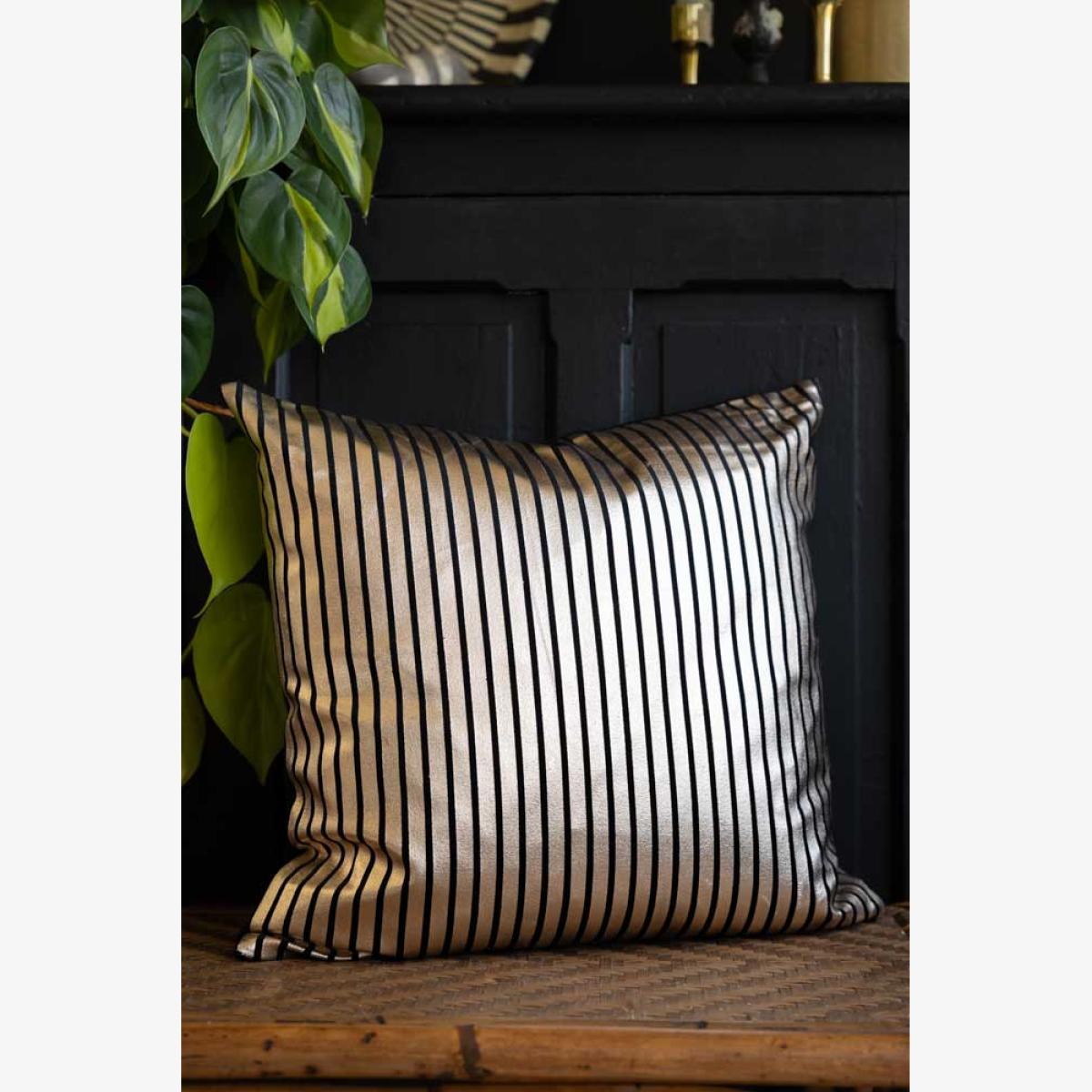 <!--td --> The striking Black & Gold Striped Cushion is a sophisticated piece, featuring bold black and gold stripes, creating a statement look that’s perfect for darker interiors or those who adore the combination of black and gold, like us at Rockett St George. The alternating stripes of shimmering gold and deep black bring a touch of modern flair to any space, whether it's on your favourite chair or adorning your sofa or bed. Create a luxurious yet inviting atmosphere in your home with the Black & Gold Striped Cushion, combining style and comfort in the most beautiful way. - Black & Gold Striped Cushion - Measures: W45cm x H45cm - Material: 100% Polyester - Spot clean only