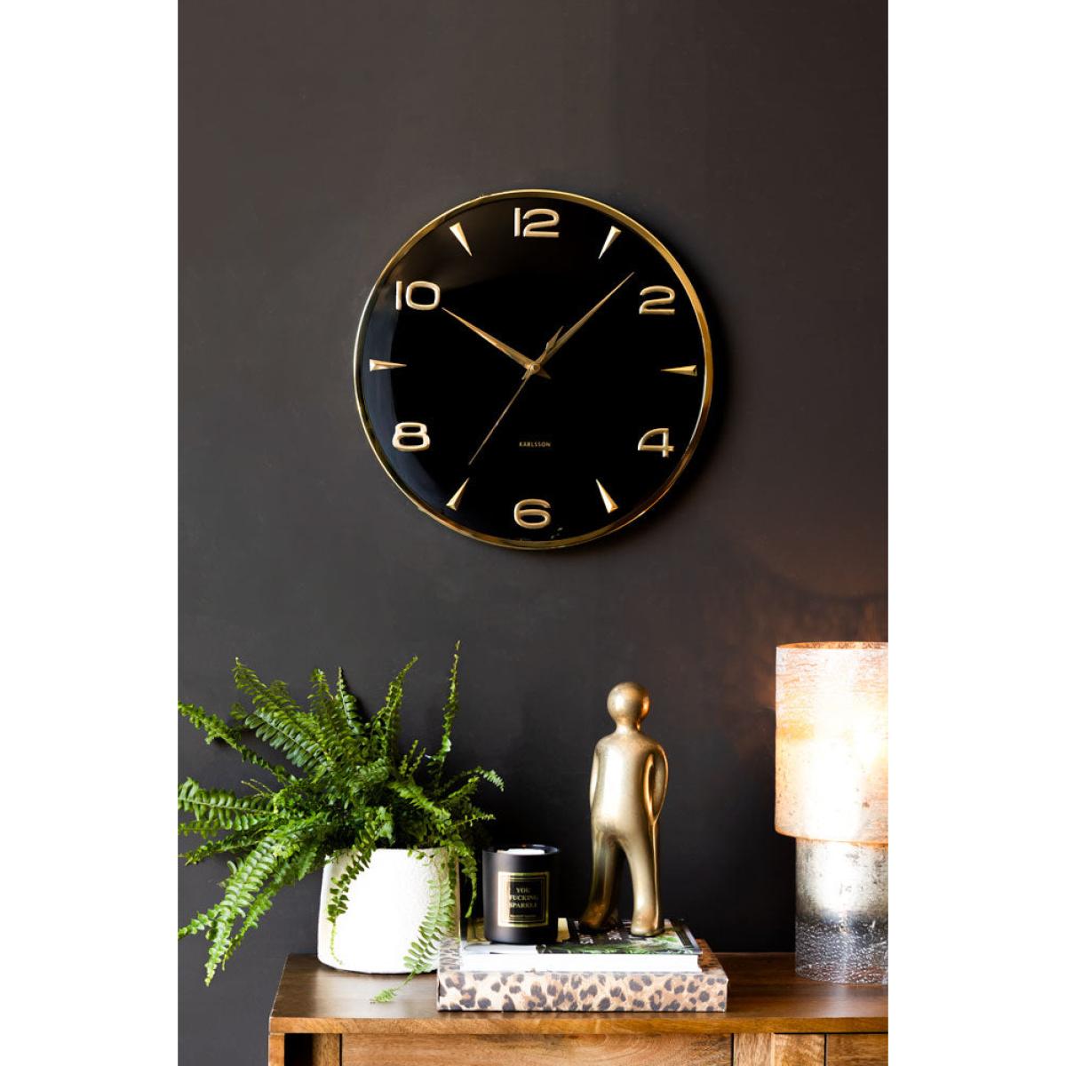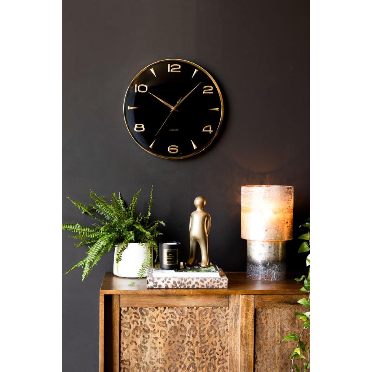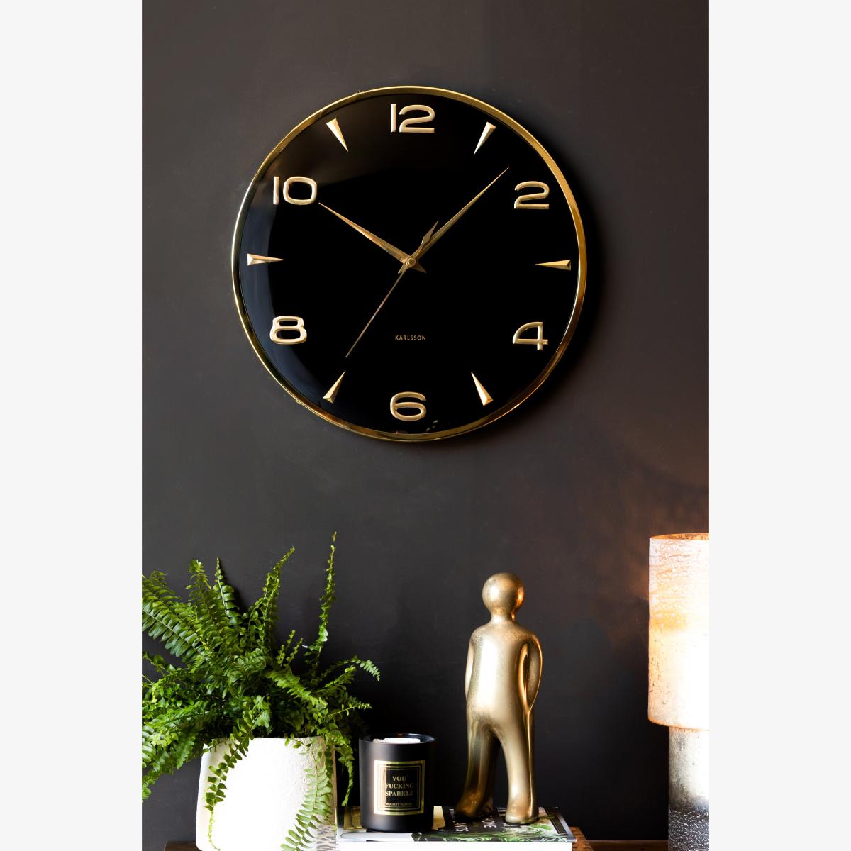 If sophistication had a timepiece, this would be it. With a sleek black face, polished gold detailing, and effortlessly chic vibes, this modern wall clock is dripping in luxury. The bold yet minimalist design makes a serious statement - because why should a large wall clock just tell the time when it can also serve opulence? Perfect for adding a touch of glamour to any space, whether this modern wall clock is for your living room, office, or that perfectly curated corner of your home. The gold numbers catch the light just right, giving a subtle shimmer that says, 'Yes, I have impeccable taste.' Because checking the time should always feel stylish. - Black & Gold Wall Clock- Measures: Dia40.6cm x D5cm- Materials: Iron- Batteries Not Included- Requires: 1x AA Battery
