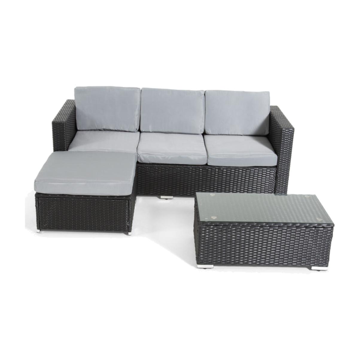 Complete your garden with this gorgeous rattan sofa set. Coming in a contrasting colours to match any surroundings, this corner sofa set will fit perfectly into any modern or contemporary garden and is easy to maintain. Seating comfort can either be enhanced by using the centrepiece coffee table or calling it a day & relaxing on the sofa itself with the deep-cushioned seat pad. A classic choice for outdoor living, this beautiful corner set will look the part in any contemporary or traditional garden. Made from all-weather garden fabric to withstand British weather! Tempered glass tabletop ensures durability and makes it easy to wipe clean. Weather and water-resistant cushions (Please read care label - bring cushions indoors in harsh weather conditions).
