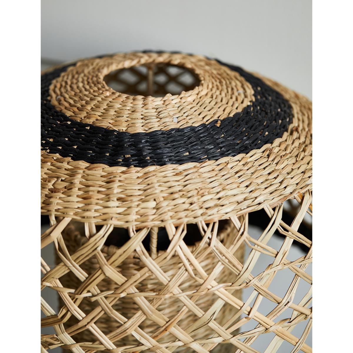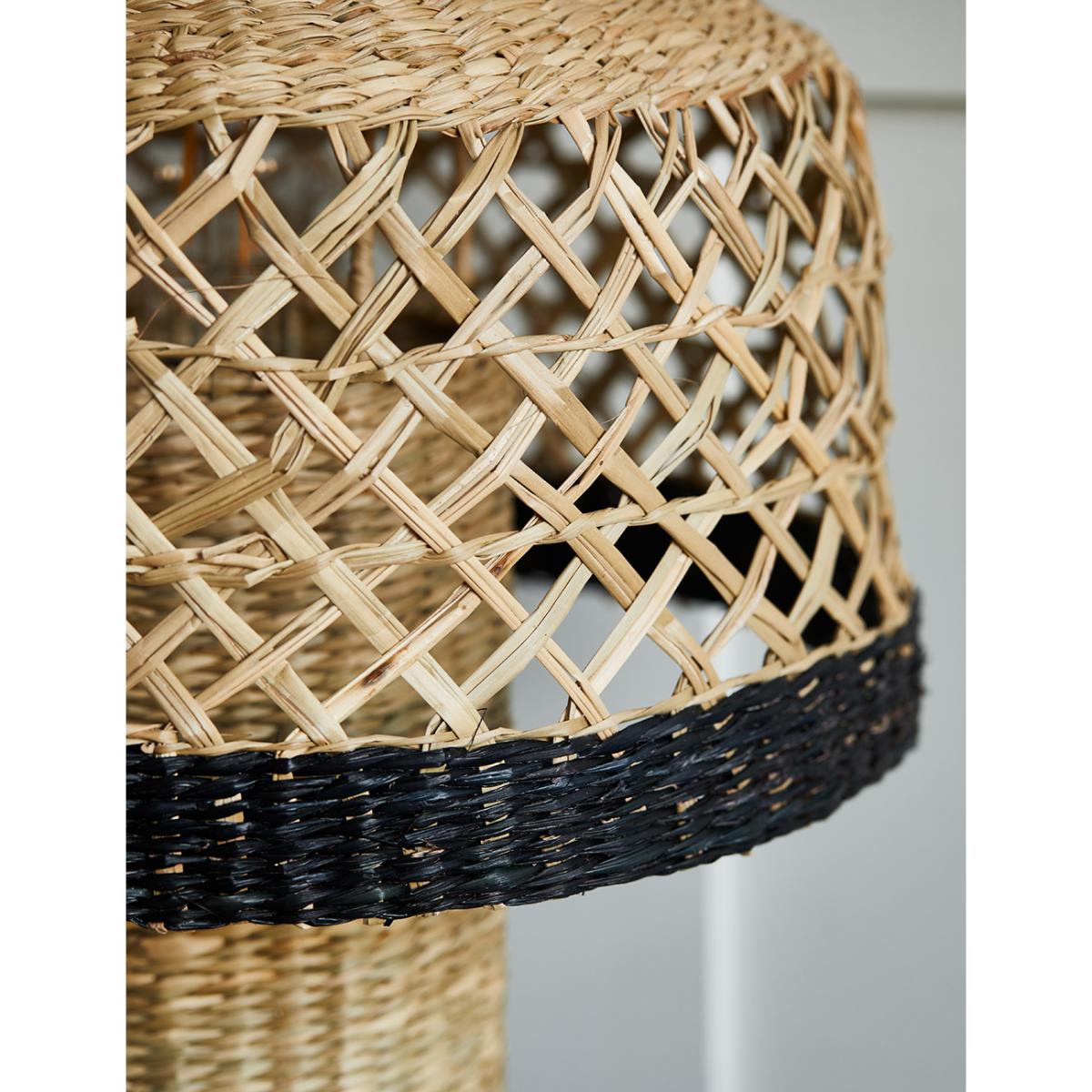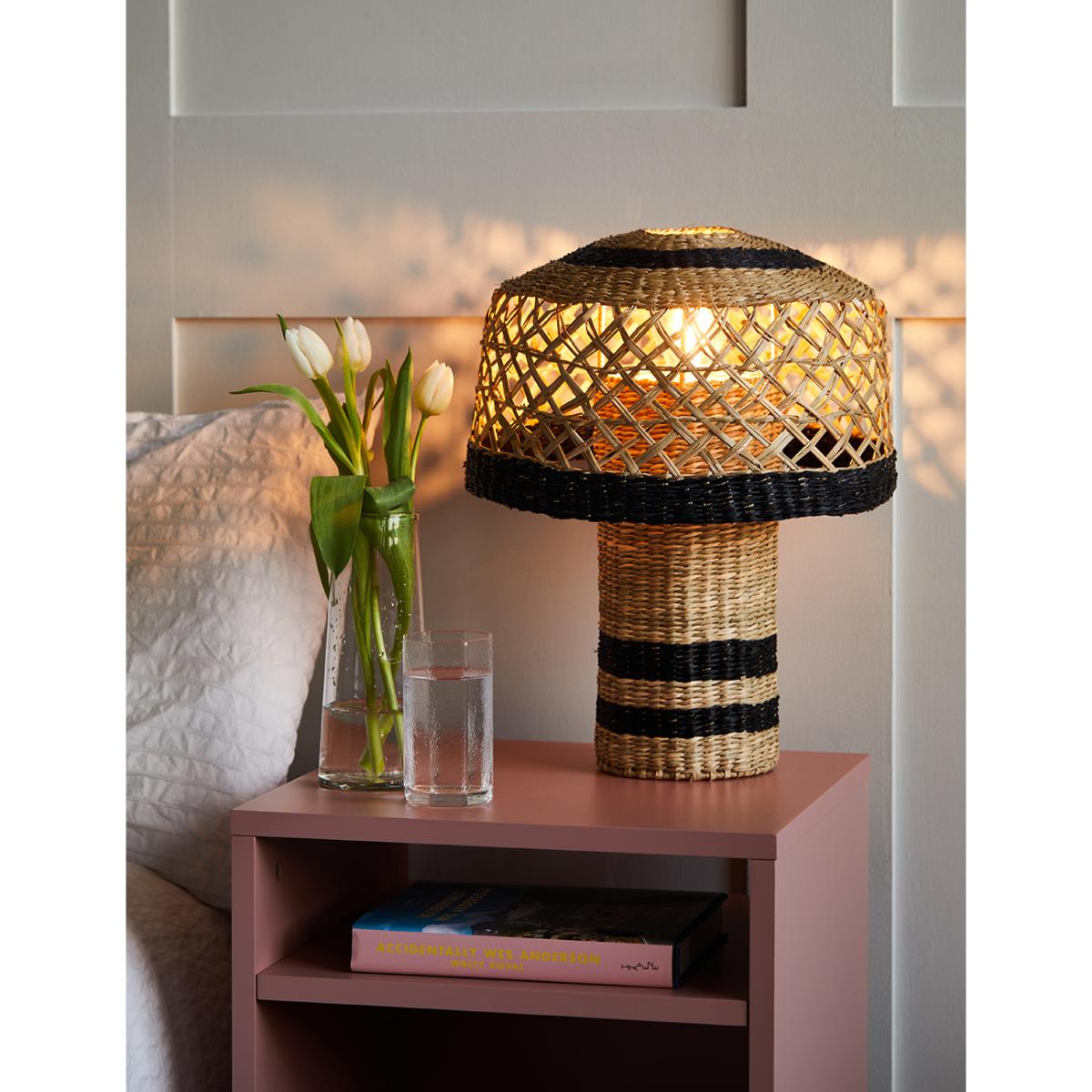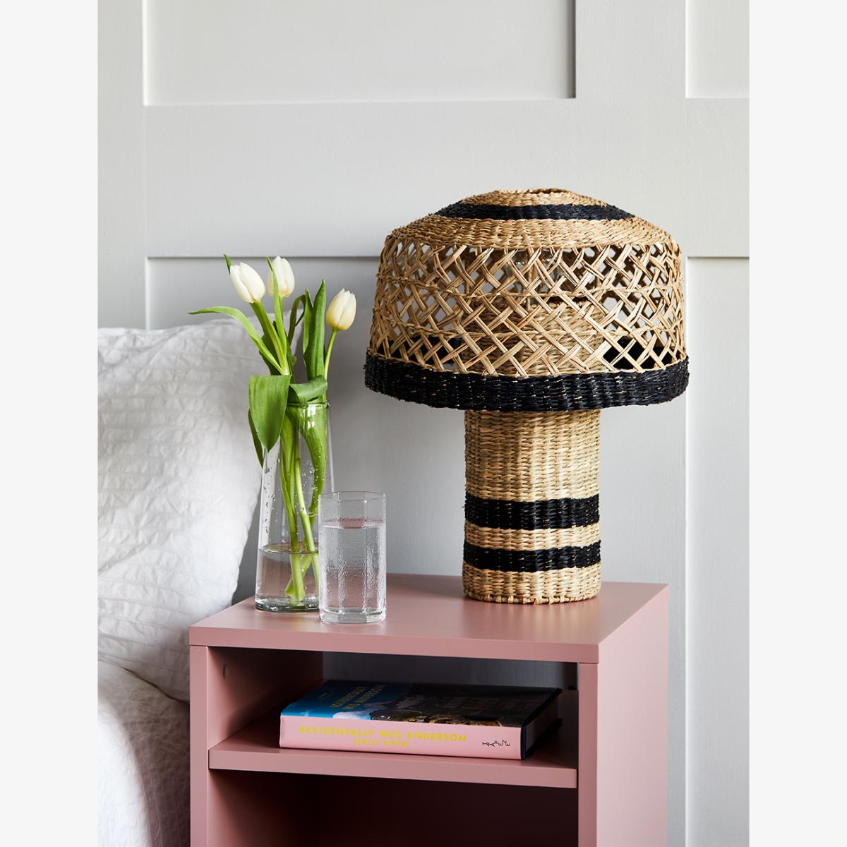 With a beautiful cross hatched design and black stripe detailing, our Woven seagrass table lamp is a perfect boho statement piece. Handwoven with completely natural seagrass, this bedside table lamp is light weight and full of texture. Perfect for adding a touch of warmth to the room. Our woven seagrass table lamp is completely versatile and looks amazing as an office lamp or nightstand lamp. Also available in green.