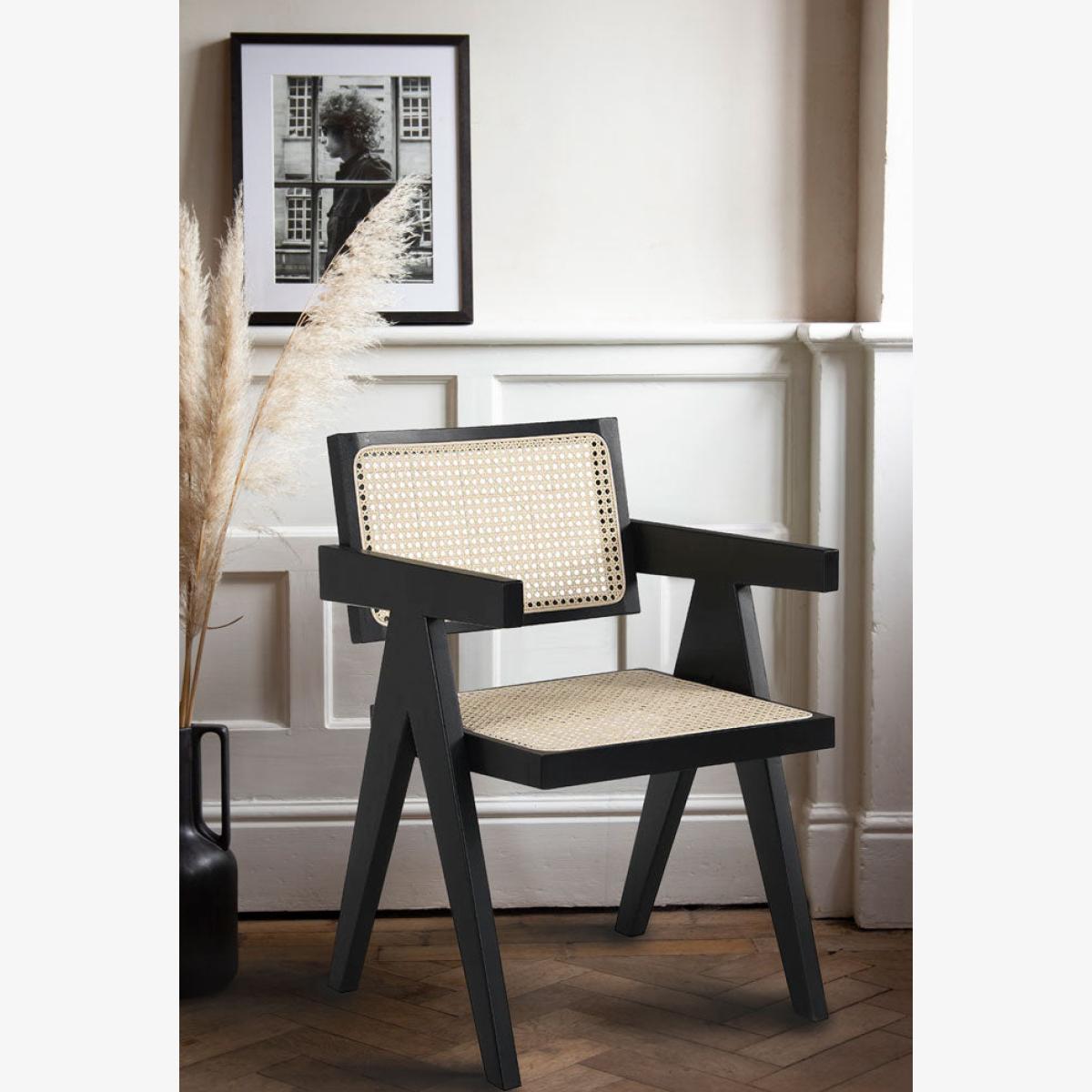 The monochrome colour scheme and clean lines of this piece put it firmly in the ‘modern’ category, but as with so much of what we do, there’s a twist! The rattan seat and back bring a ‘70s vibe we love, while the sleek black wooden frame boasts a definite ‘80s look and feel. It’s a mash-up of the decades that works a treat, combining to create an elegant, sophisticated piece that brings a sense of style to your living room or dining area. Alternatively, it works equally as well as an accent chair (add a colourful cushion for a pop of colour) or as a practical addition to your study or workspace. Generously sized for optimum comfort, this statement chair is a top spot in which to park your bot. We’re sold! - Black & Natural Rattan Statement Chair - Material:Wood and rattan - Measures: H80cm x W53cm x D53cm. Seat height 46cm