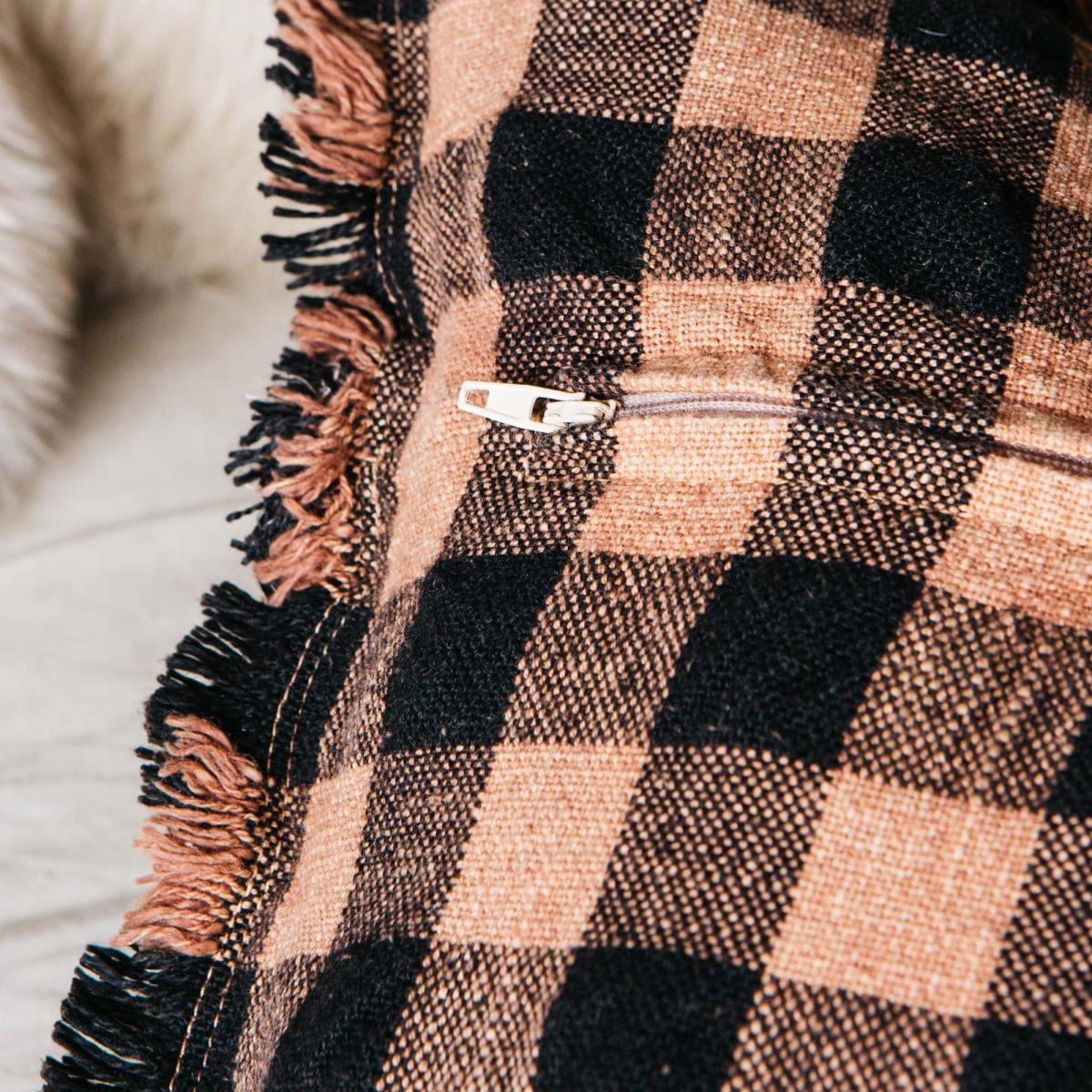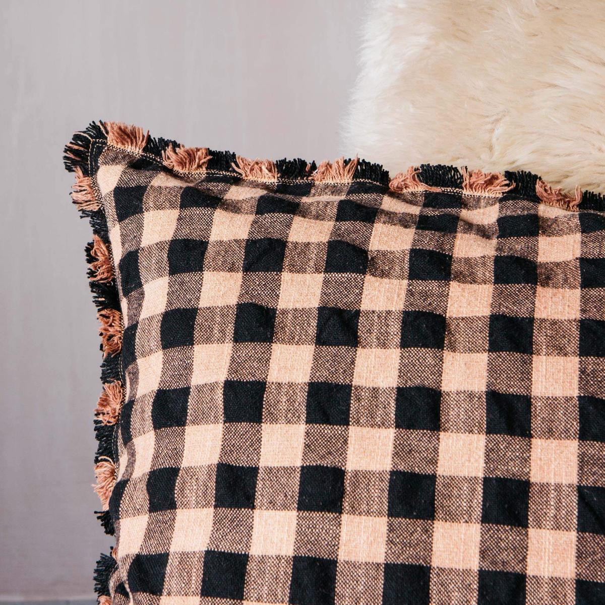 Black and Peach Gingham Cushion
