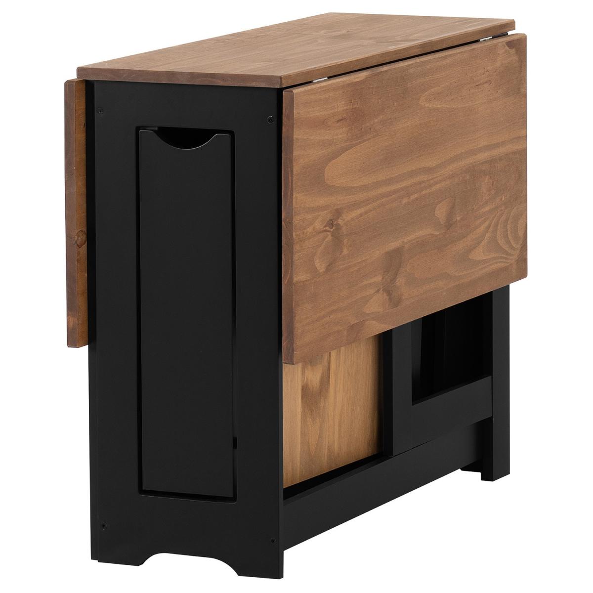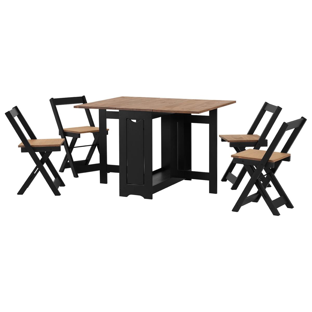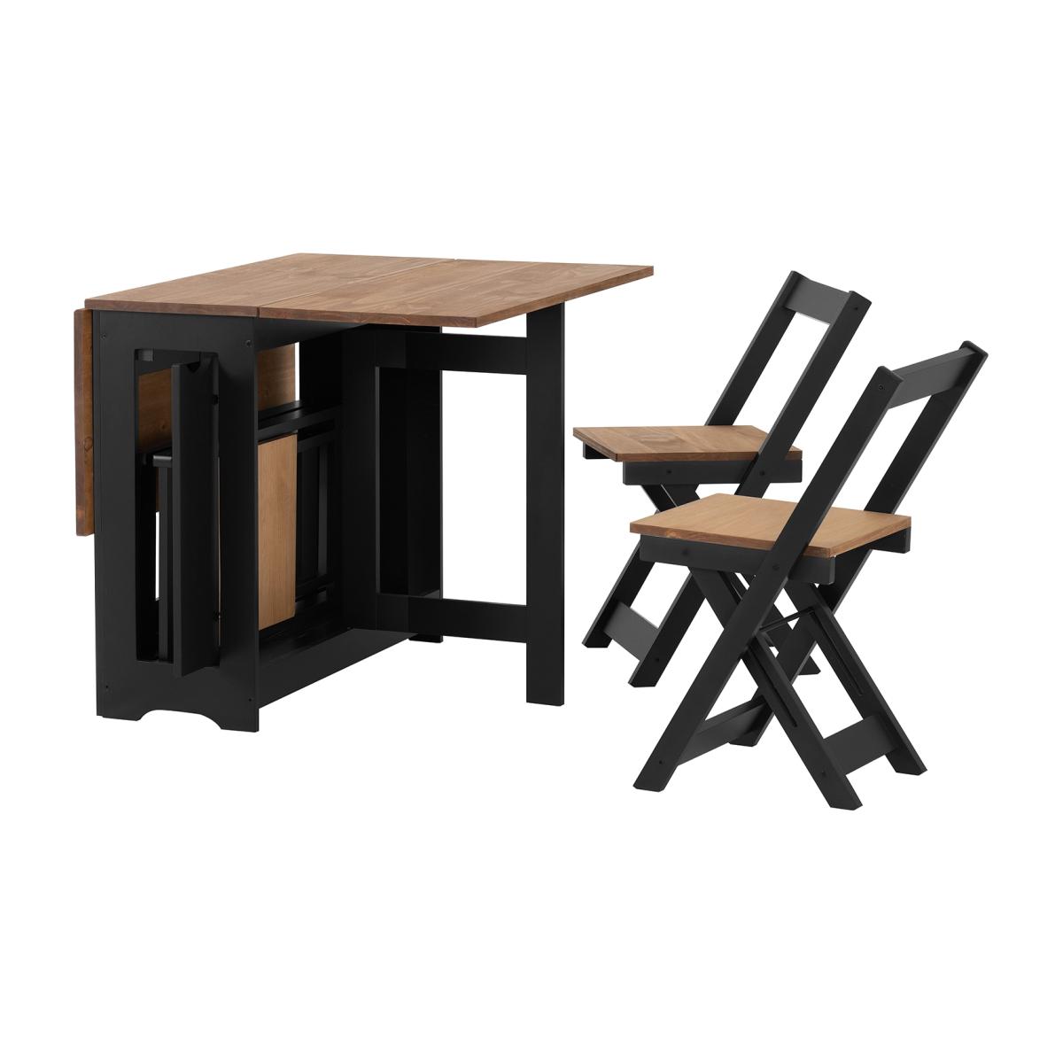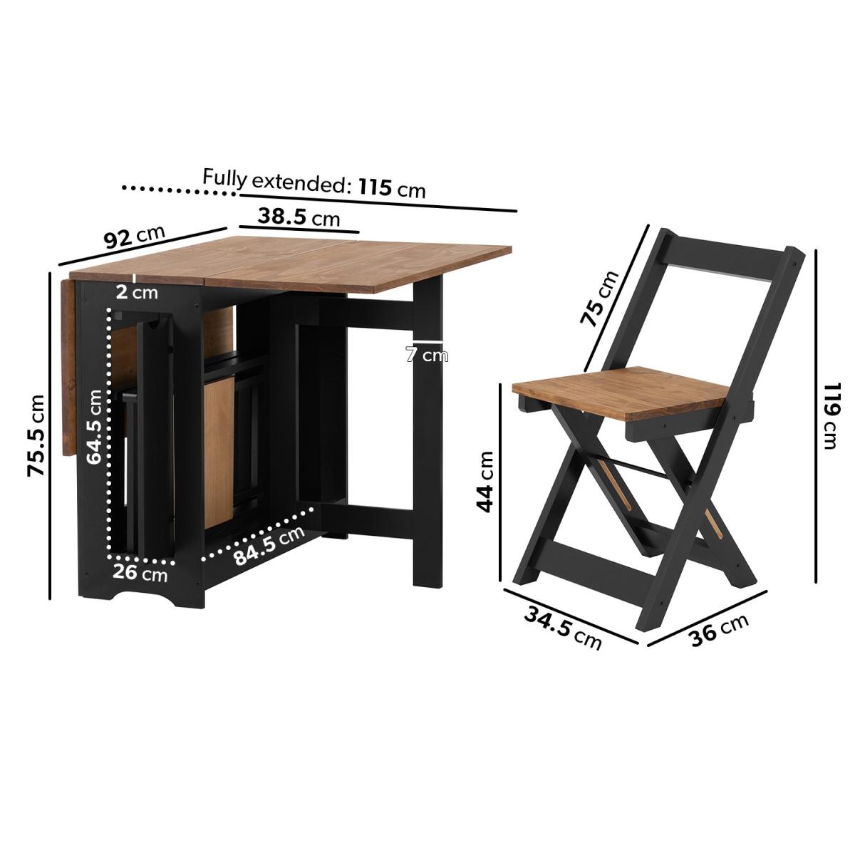 Double your dining space in an instant by lifting the table sides into place. The table seats up to four diners when extended. Once you've finished dining, simply fold the chairs up and store them neatly inside the table. The hinged panel on the side helps to conceal the chairs, keeping your dining area clutter-free. Made from pine, the table is hard-wearing and easy to clean. This small dining set requires simple self-assembly and comes with easy-to-follow step-by-step instructions.
