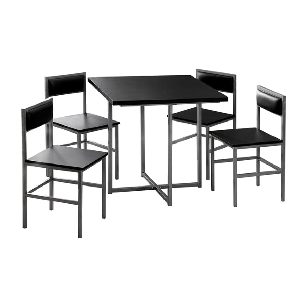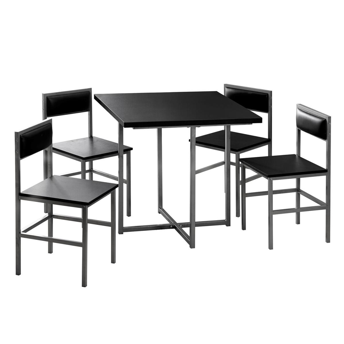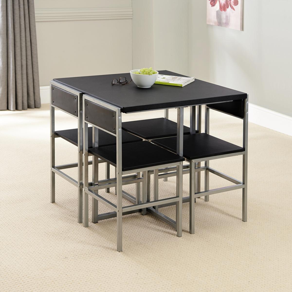 Black and Silver 4 Seater Compact Dining Set - Black/Silver