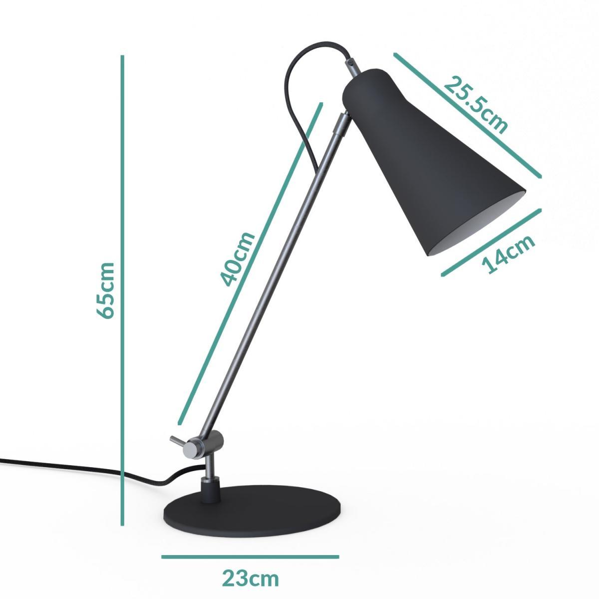 Perfect for bedrooms and smaller spaces like home offices, this light's simple construction is adjustable just above the base, just where it's needed for reading or working. There's no glare thanks to the matt textured finish to the shade and base, and the coarse surface prevents finger marking too. It won't tip either as the weight is spread across its sturdy, slim base. The black braided cable completes the contemporary look.