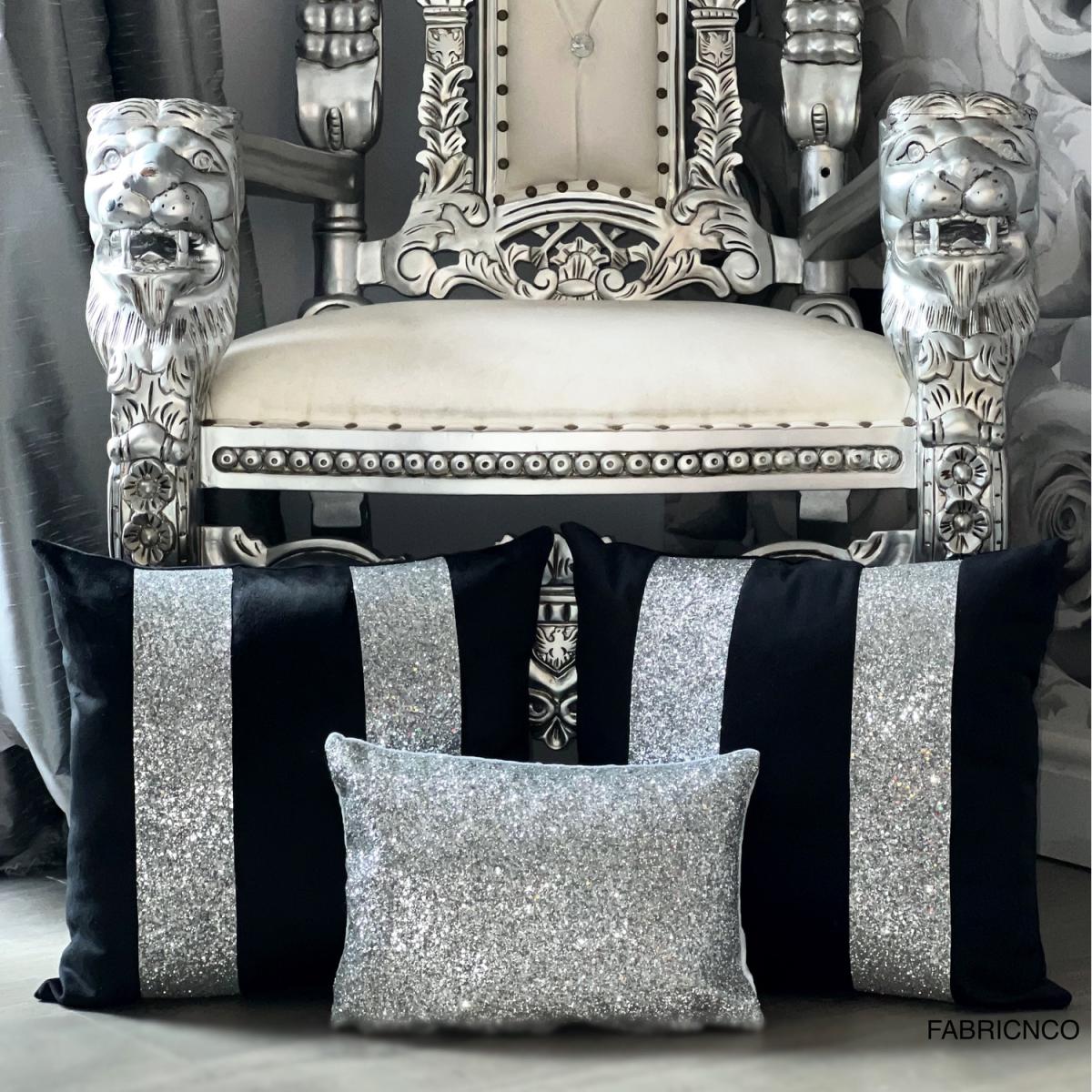 I love this cushion set for its luxe vibe and versatile sparkle-perfect for adding a touch of glamour without overwhelming the space. The plush velvet and glitter detailing work beautifully in both contemporary and glam interiors, especially when paired with monochrome palettes or metallic accents. For styling tips, consider layering it with other textured cushions in solids or subtle patterns to keep the look balanced. It’s ideal for a sophisticated lounge or a statement bedroom, where the silver and black combo elevates the overall aesthetic. A practical tip is to vary the size and fabric textures of your cushions for a more curated and inviting look.