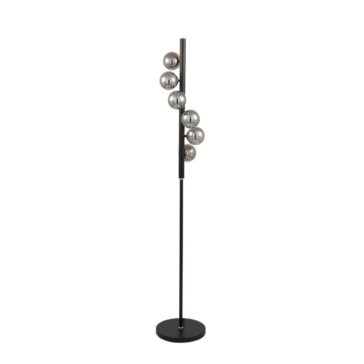 Dimensions H169cm x W25cm x D25cmA sophisticated floor lamp with 6 smoke glass balls and black post and brass coloured detailing creating a chic futuristic look. Create a statement with this stunning floor lamp. Features. Stunning contrasting black floor lamp with smoked orbs created a futuristic feel. Sleek and sophisticated style. The 6 smoked glass orbs are angled in different directions to perfectly illuminate your interior Perfect piece to add a modern touch to your living area Assembly required..