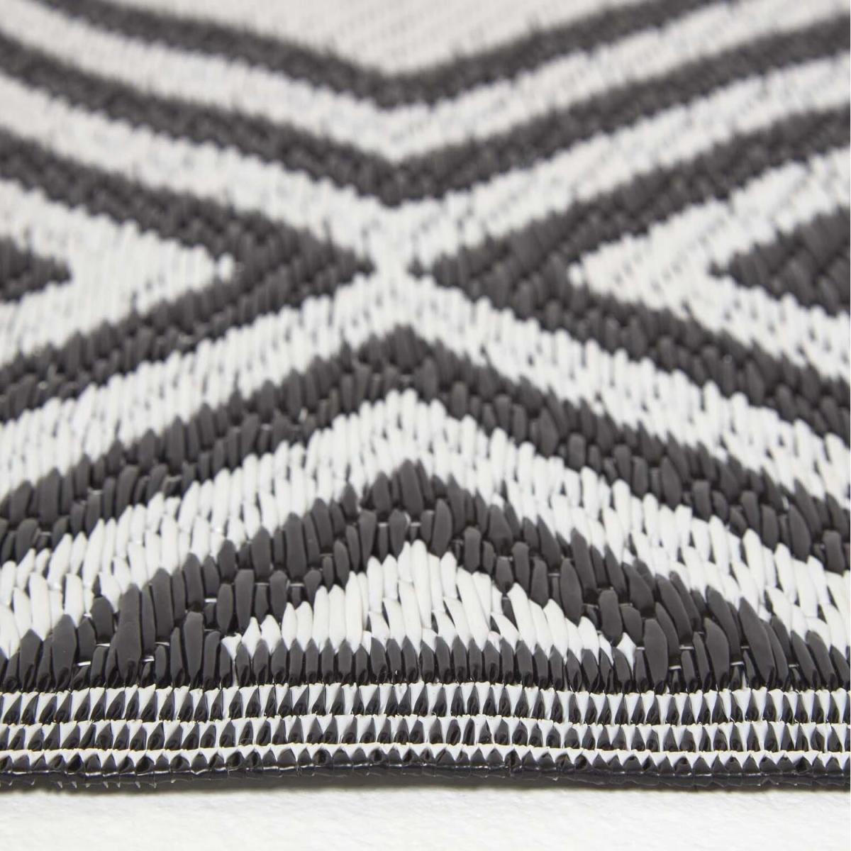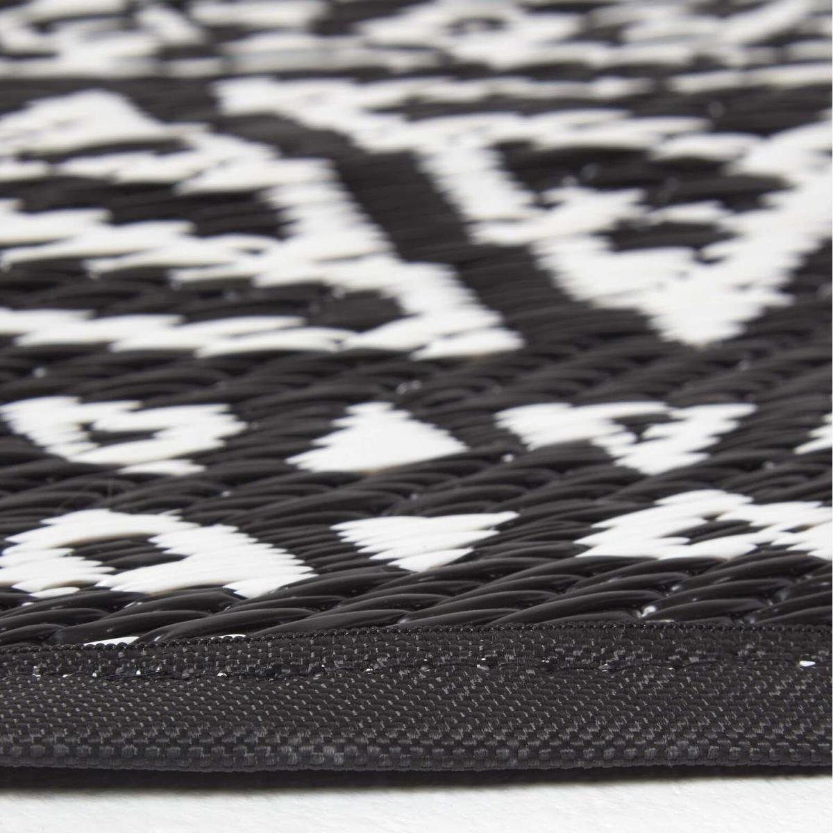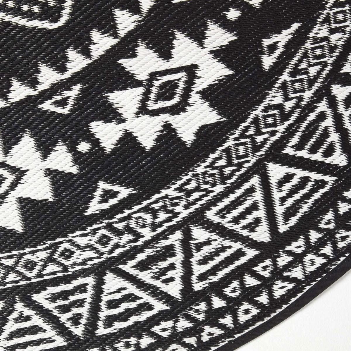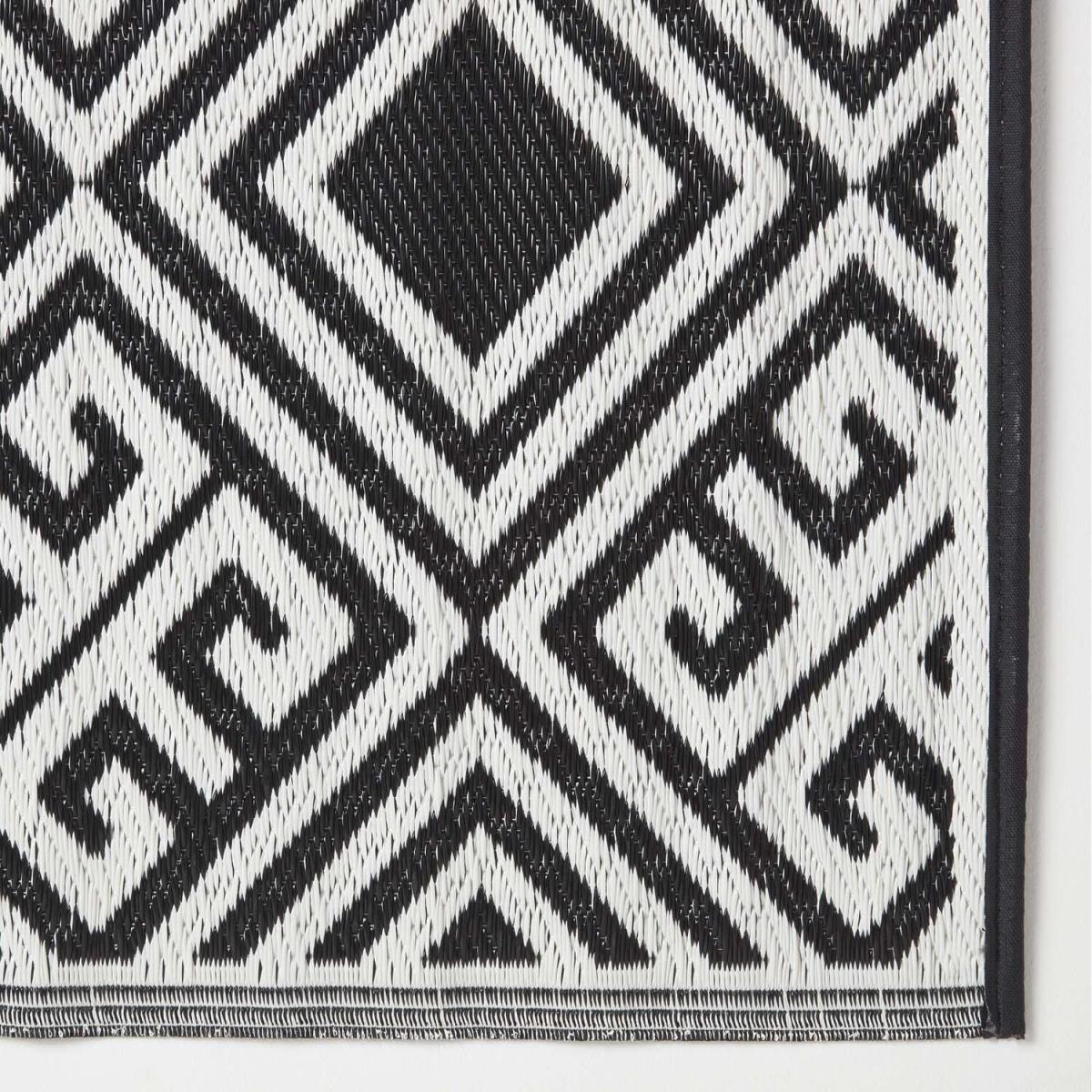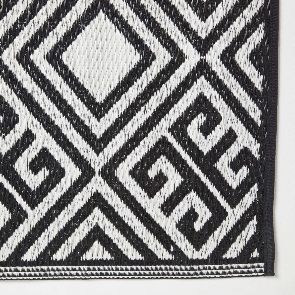 Add some style to your outdoor living area with this large garden rug from Homescapes. In black and white, this rug has a stylish geometric pattern and has been woven from plastic to ensure that it is completely waterproof. The rug is revisable, meaning that you can have the rug either way with a black pattern on a white background, or a white pattern on a black ground. Designed for outdoor use, this rug is water-permeable meaning that it can withstand any weather including rain. The material also makes this rug very easy to clean, simply wipe away dirt with a damp cloth or wash under running water. From Homescapes range of garden ornaments and accessories, this outdoor rug will brighten up your garden living areas, and it is perfect to use on patios. A black and white Persian-style rug is also available from Homescapes separately. This rug would make an ideal gift for any new homeowner or keen gardener.