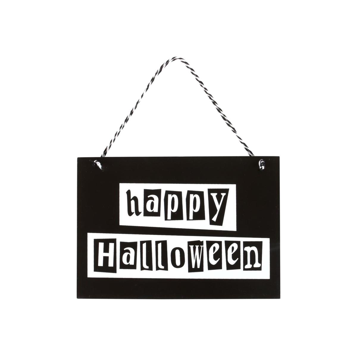 Black and White Happy Halloween Hanging Sign - Black