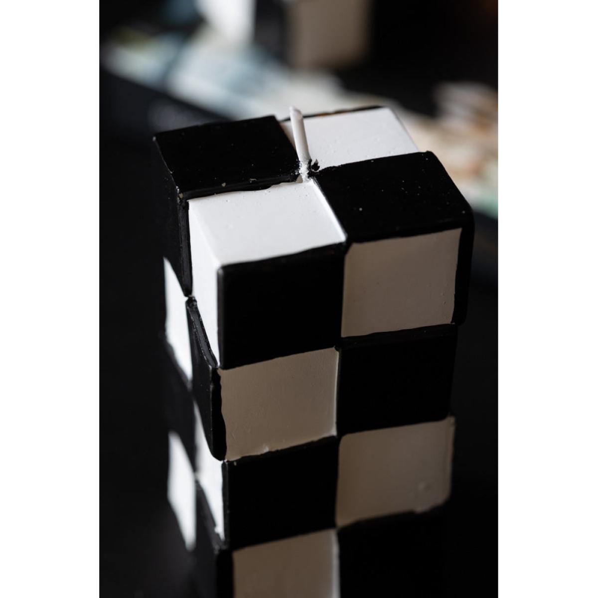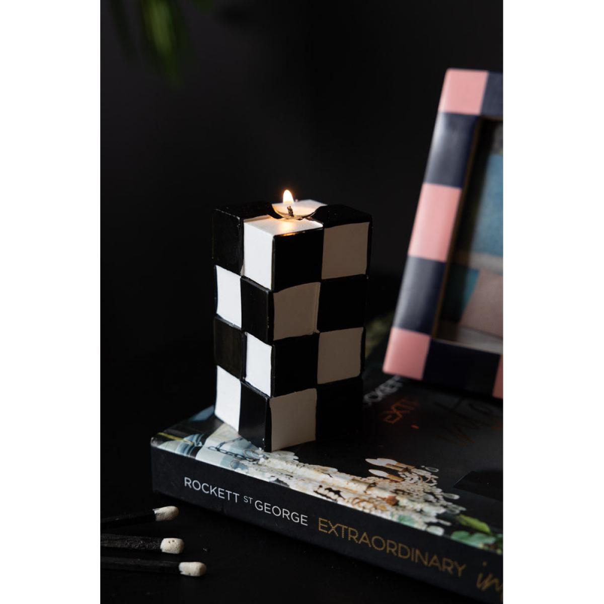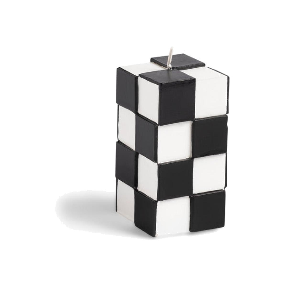 About The Black & White Miniature Checkered CandleIntroduce the checkerboard pattern trend to your home with the Black & White Checkered Candle. Made from wax with a black and white check design, this playful mini pillar candle measures H8cm x W4cm and has an estimated burn time of 4 hours. Why We Think You’ll Love The Monochrome Chequered CandleAs far as we’re concerned, candles are essential for every home and the Black & White Checkered Candle is one of our favourite finds yet. Much more than just a candle, the bold monochrome check pattern creates a small but mighty feature on your sideboard, coffee table or shelves. In addition, when lit the black and white small pillar candle creates the perfect cosy atmosphere for relaxing in style. Display yours alongside your favourite design books, photos and a set of matches for magical monochrome vibes!