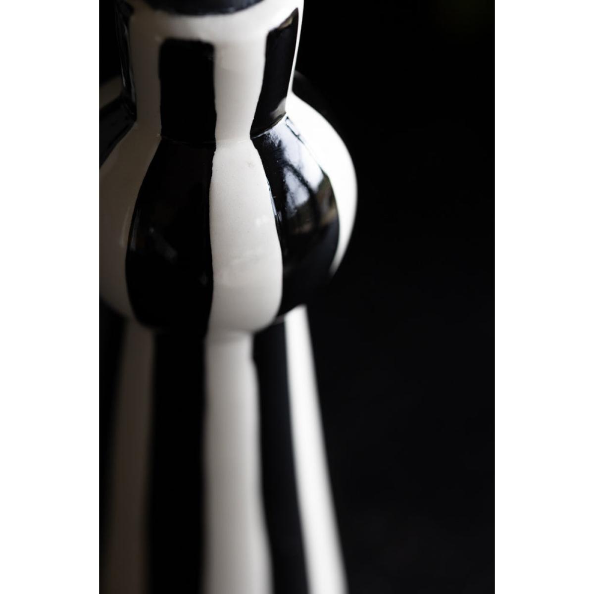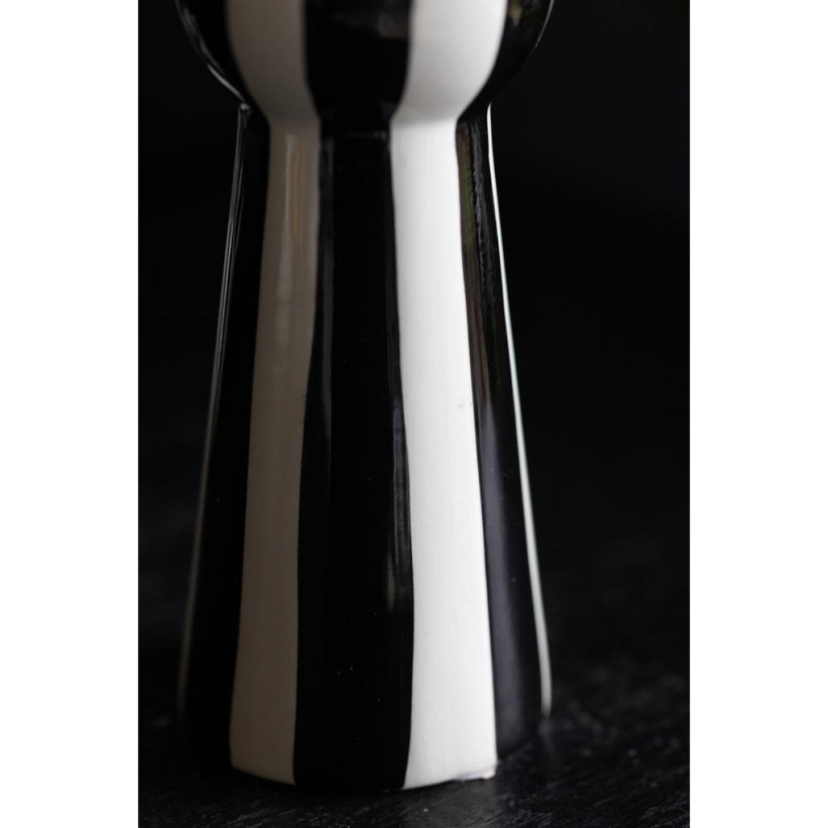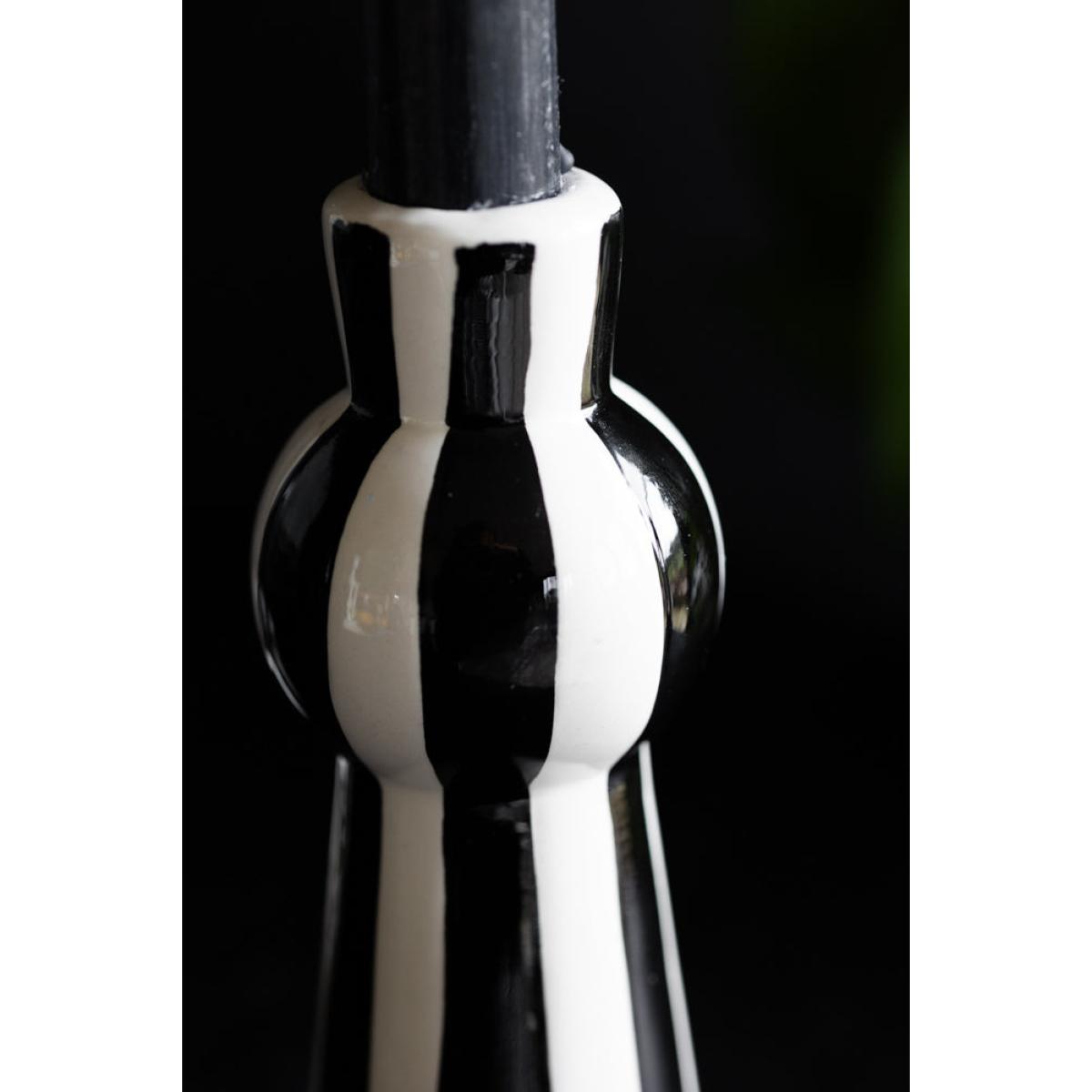Stripes are everywhere at the moment, and with good reason. As a timeless pattern that looks great with *everything*, you cannot go wrong with a sexy striped number like the Black & White Stripe Candlestick Holder in your home. Candlelight is magic, and we always recommend filling your home with as many candles as possible to create a relaxing atmosphere and a flattering, golden glow. Perfect for dinner candles, from tapered to twisted, colourful or striped designs, the tall-yet-curvy shape provides a chic base for showing off the beauty of candlelight. In addition, the bold black and white vertical stripes create a modern feature on your dining table, sideboard or shelves. One of our top styling tips is to introduce a set of stripe candle holders to a monochrome table display for a dreamy dining scene that packs a punch. Also available as a beautiful bowl candlestick holder, why not indulge your stripe obsession by buying both? - Black and white striped candle holder- Measures: W6cm x H17cm | Candle dia. 2.2cm- Never leave candles unattended in your home
