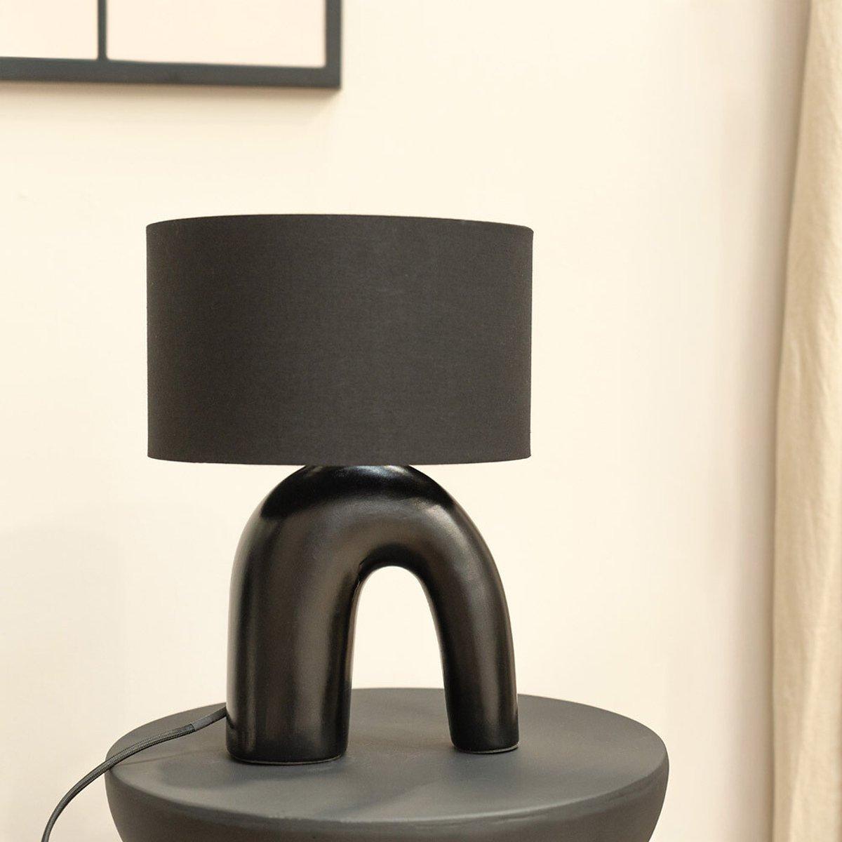 Black Arch Abstract Ceramic Table Lamp with Fabric Drum Shade