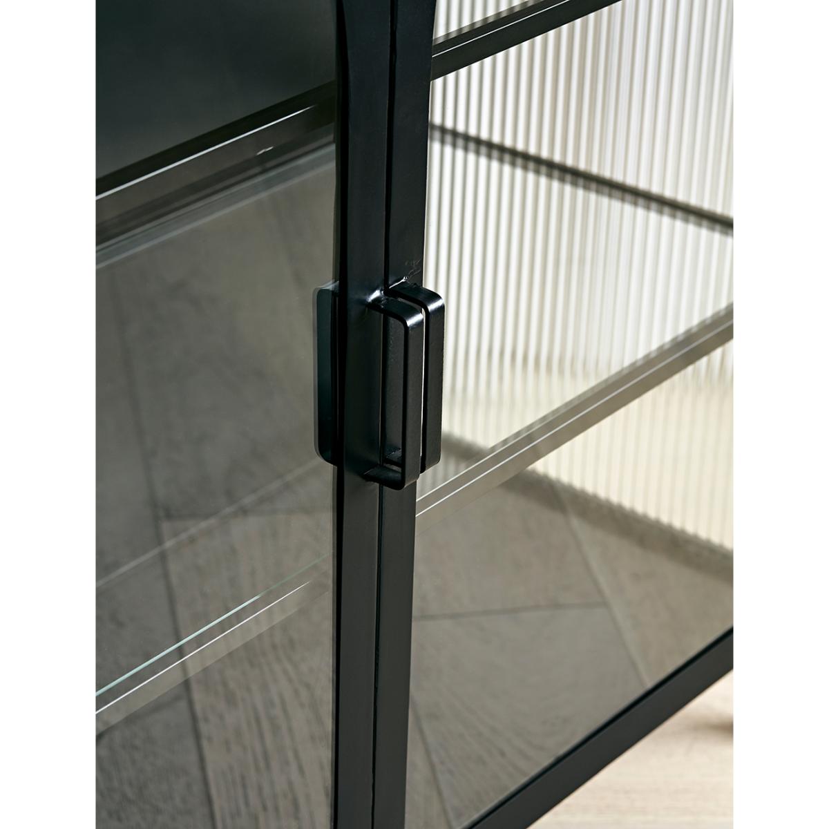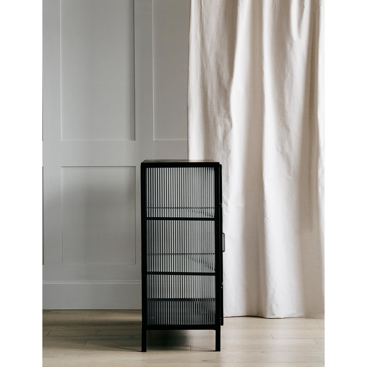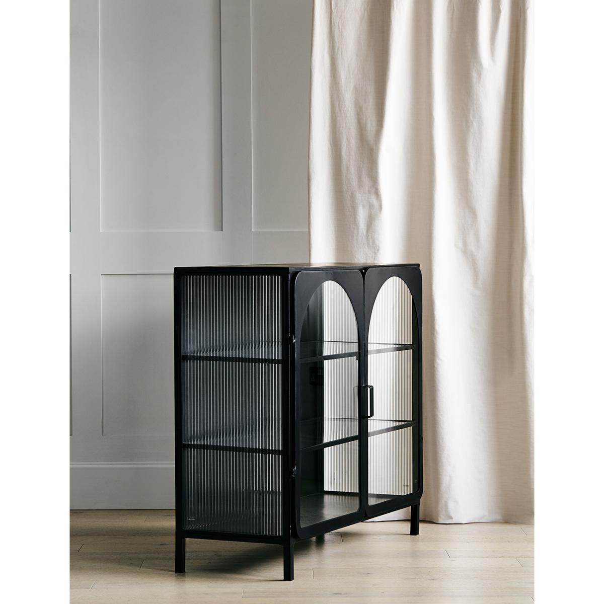 This beautifully designed black metal and glass cabinet is the perfect fusion of trend-led and classic industrial style. We love the on-trend arch-shaped glass windows on the front of the cabinet and the rippled glass on the sides. We would use this as a display cabinet in a dining room, kitchen, hallway or living room.