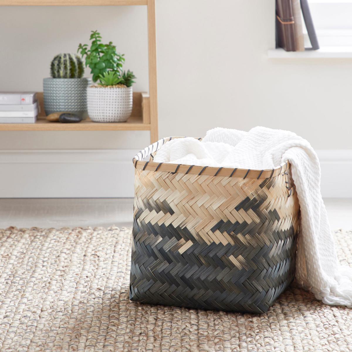 I love this basket because of its versatile colour gradient-from black to beige-which makes it easy to incorporate into various interior schemes. It works particularly well in modern, coastal, or boho-inspired spaces, adding a touch of natural texture without feeling heavy. Practical tips include using it as a stylish storage solution for throws, magazines, or laundry, and placing it in living rooms or bedrooms to keep areas tidy. Its neutral palette allows it to blend seamlessly with both light and darker colour schemes, making it a practical yet attractive addition to any room.