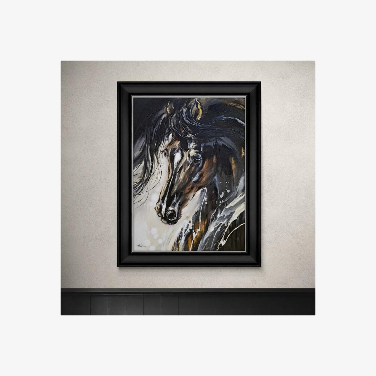 I love the bold presence of this horse print; it works especially well in modern or equestrian-inspired interiors. Its striking black and white palette makes it versatile, perfect for adding contrast to neutral walls or complementing darker colour schemes. For practical styling, try grouping it with other nature or animal-themed artwork, or hang it as a statement piece above a sofa or console table. To keep it looking its best, consider framing it with a slimline or matte border to enhance its contemporary feel, and avoid placing it in overly humid or direct sunlight situations to maintain the print's vibrancy.
