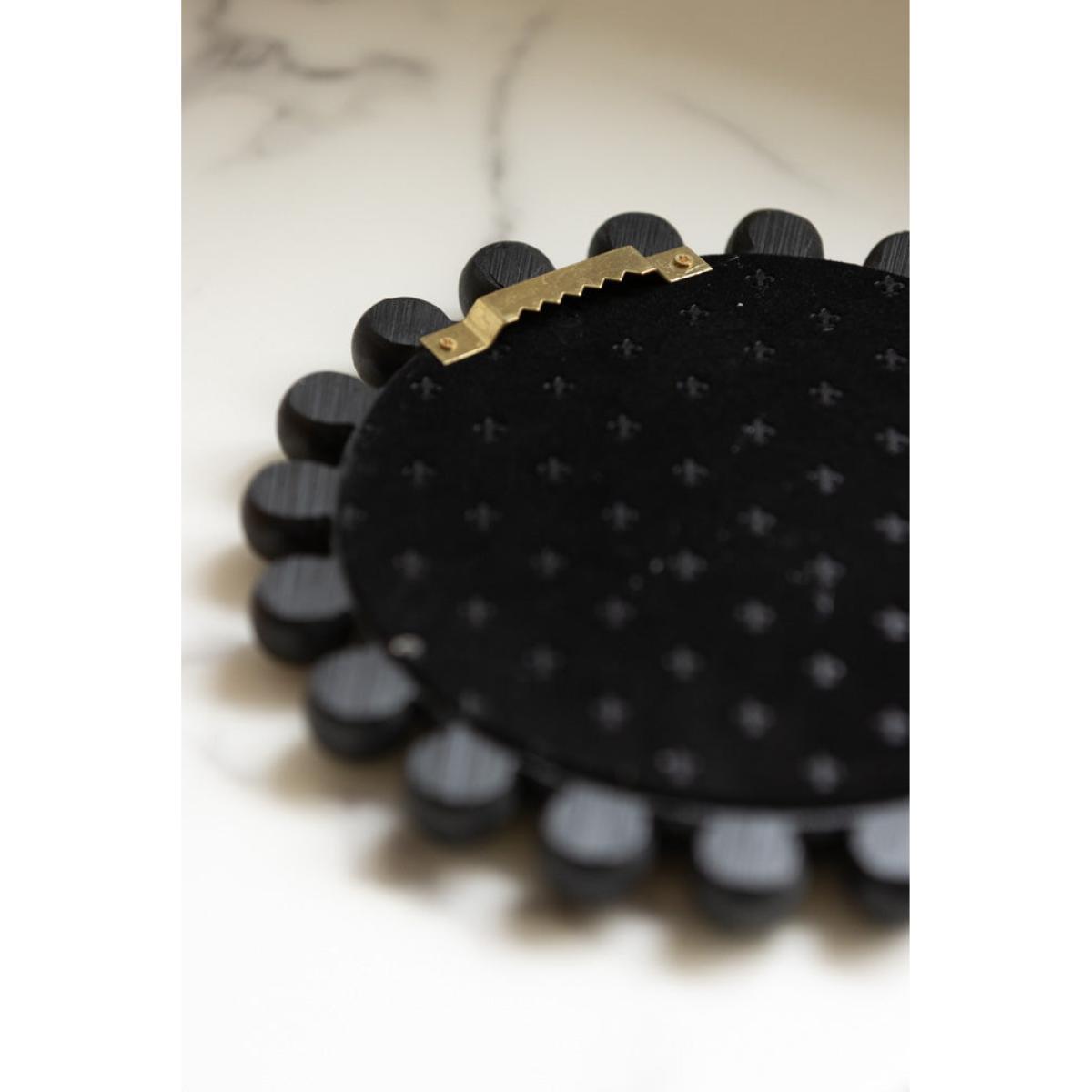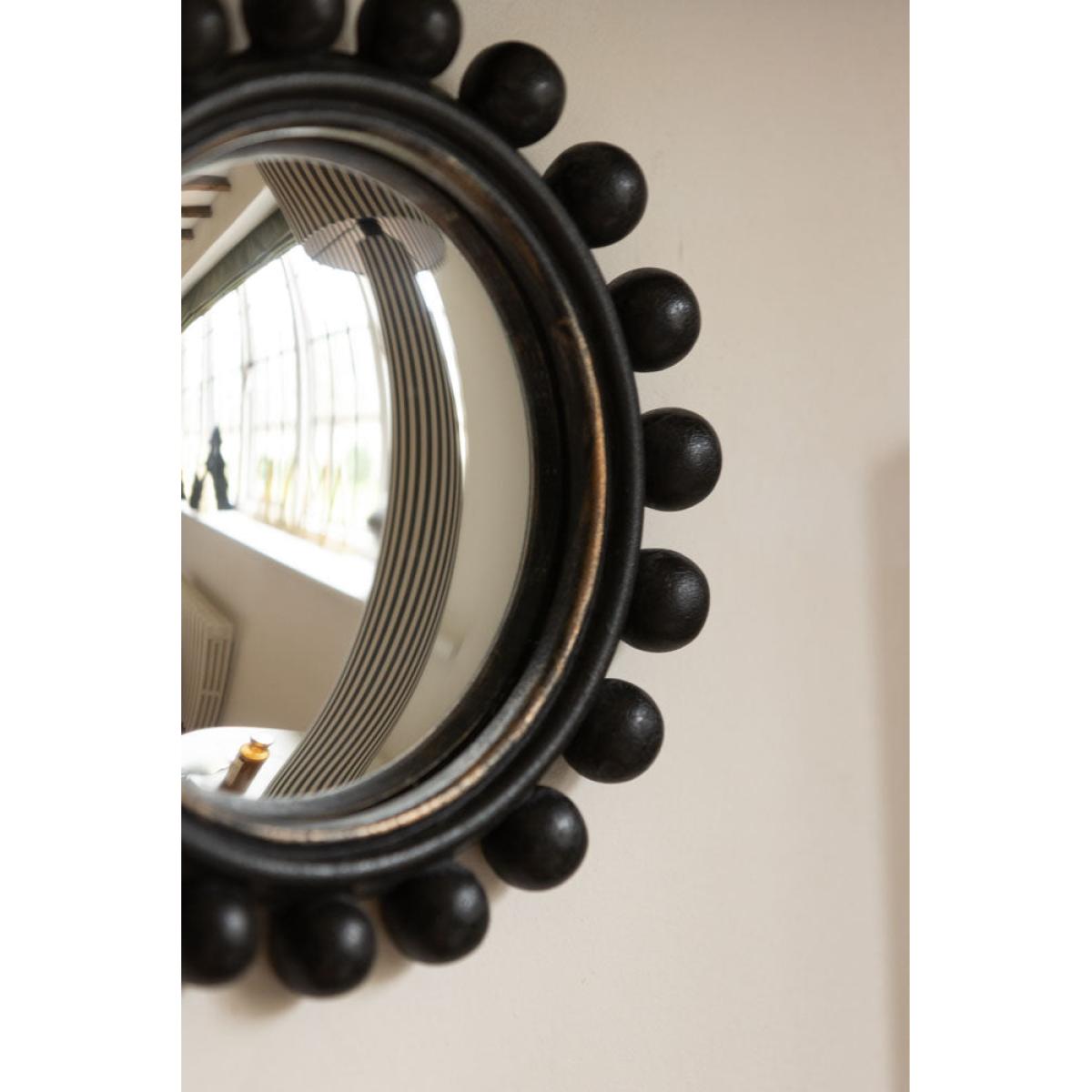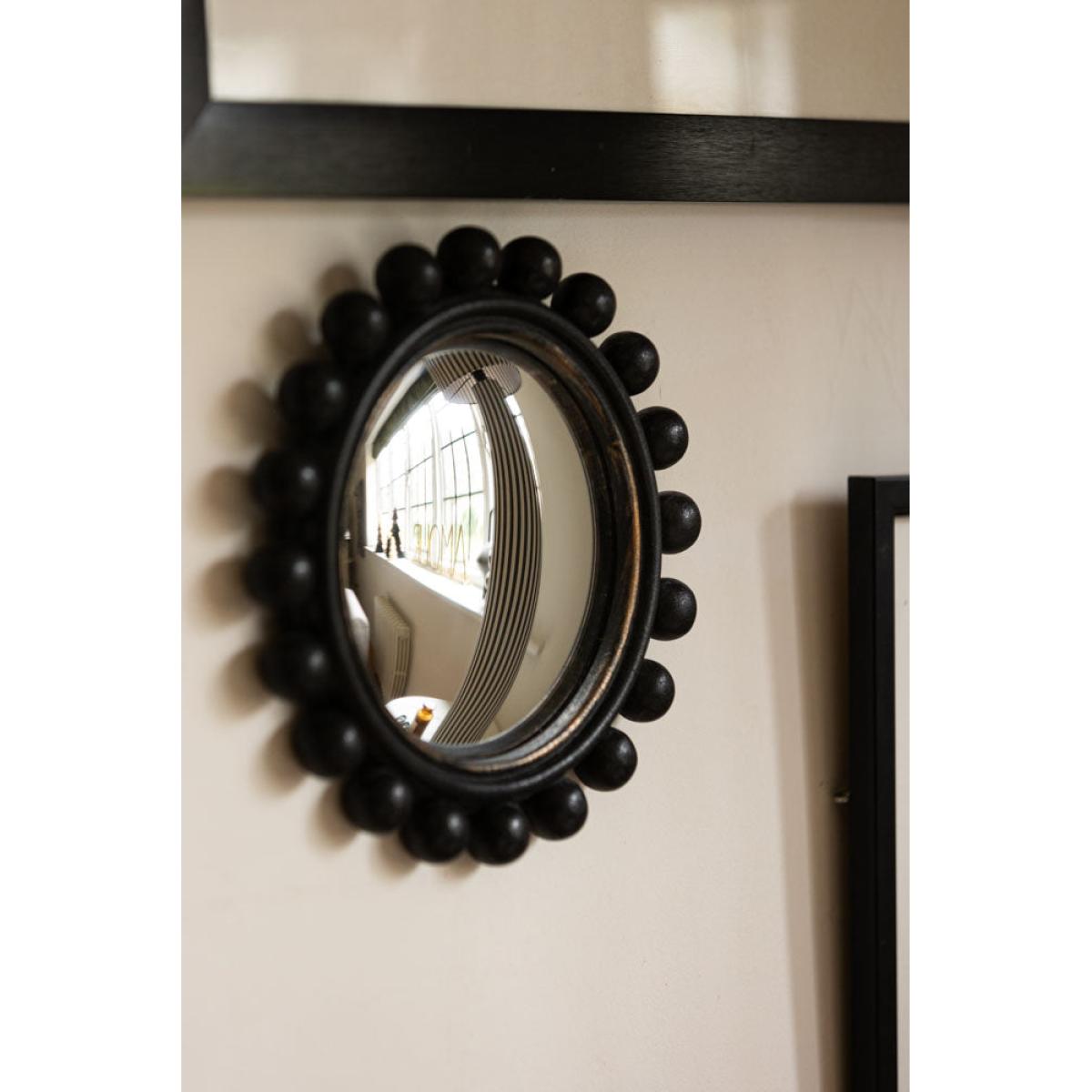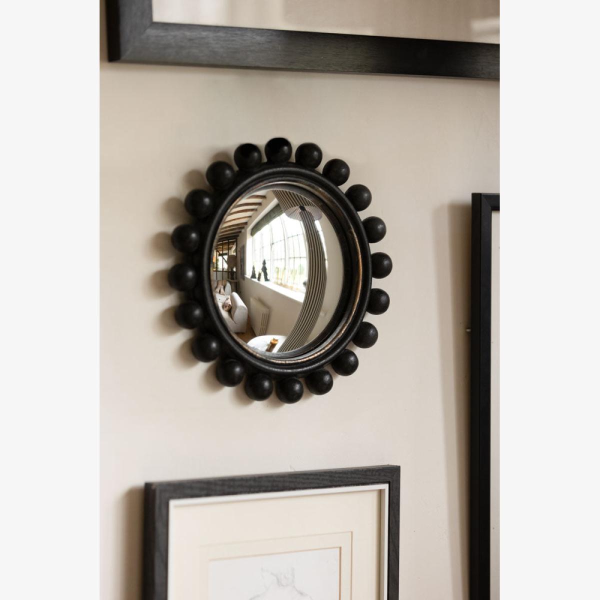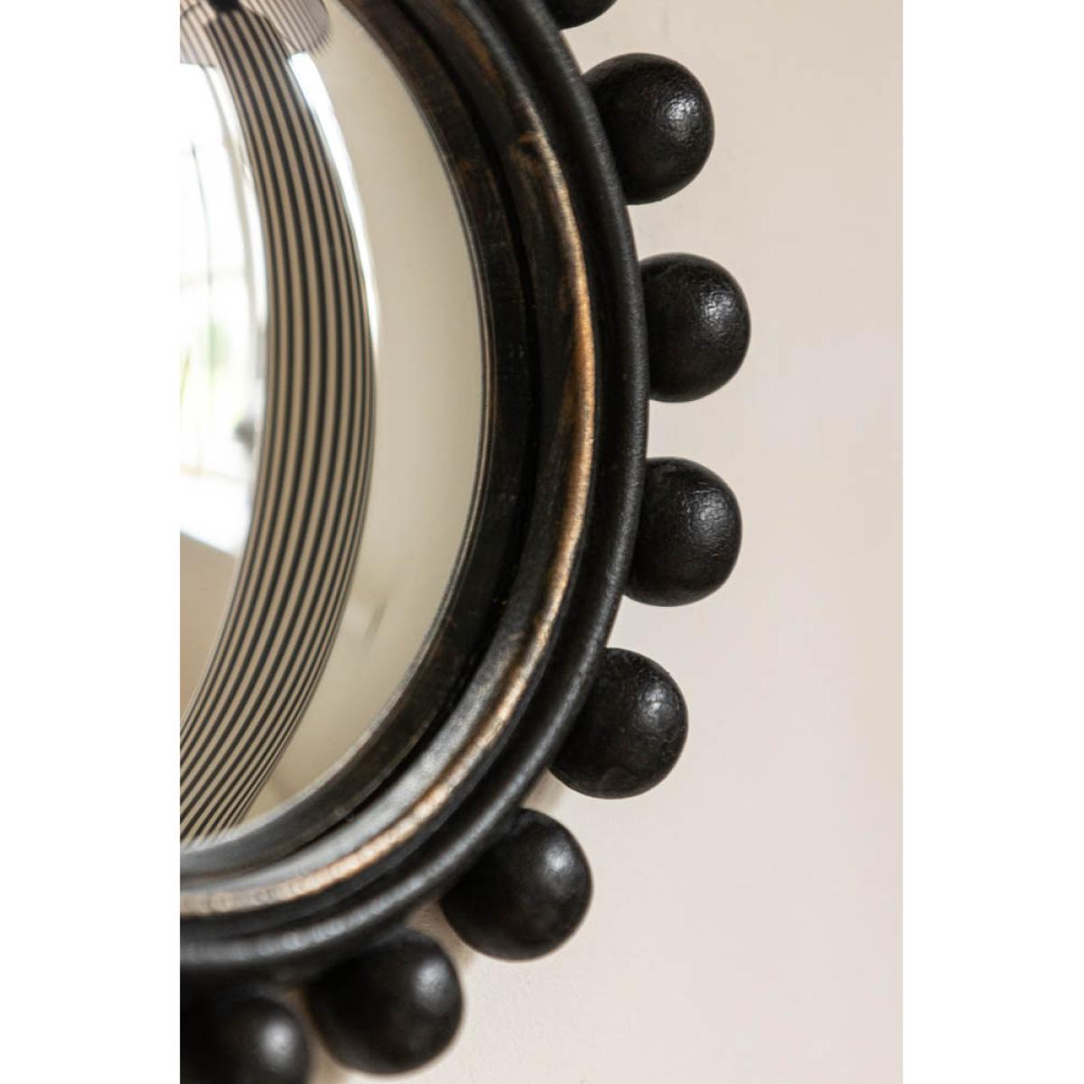 About The Black Bobbin Convex Mirror The Black Bobbin Convex Mirror introduces a piece of practical wall art to the walls of your home. Made with a resin frame, the round mirror features quirky bobble detailing around the outside and a distressed black finish. Measuring 21cm, the convex mirror is perfect for both large and small spaces. Why We Think You’ll Love The Black Round Mirror With Bobble Detailing Mirrors are the ultimate hero accessory for the home and help create the illusion of extra space by bouncing light back into the room. However, a convex mirror creates the same effect with the added benefit of quirky style credentials. Celebrating the rise of bobbin design details across furniture and accessories, this beautiful black bobbin mirror ensures your home is ahead of the trends. How To Style The Black Bobbin Wall Mirror The Black Bobbin Convex Mirror is ideal for smaller rooms of the home such as the hallways and bathrooms when styled solo. However, the unique bobbin design also easily doubles as a wonderful piece of wall art and will look amazing displayed as part of a gorgeous monochrome gallery wall.