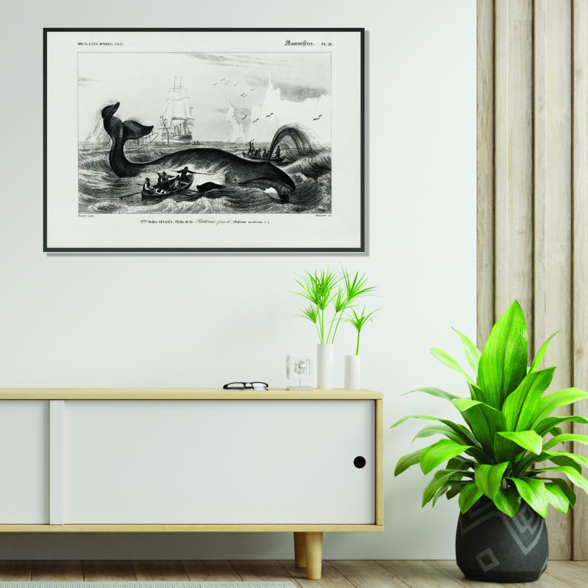 I love the whale print for its subtle monochrome aesthetic and historical vibe. It works particularly well in interiors with a vintage or nautical theme, adding character without overwhelming the space. It’s perfect for placing above a console table or in a study where a calm, contemplative tone is desired. For styling tips, consider pairing it with natural textures like wood or leather, and keep surrounding colours neutral to allow the print to stand out. This piece can also serve as a conversation starter, especially if displayed alongside other maritime or scientific artefacts.