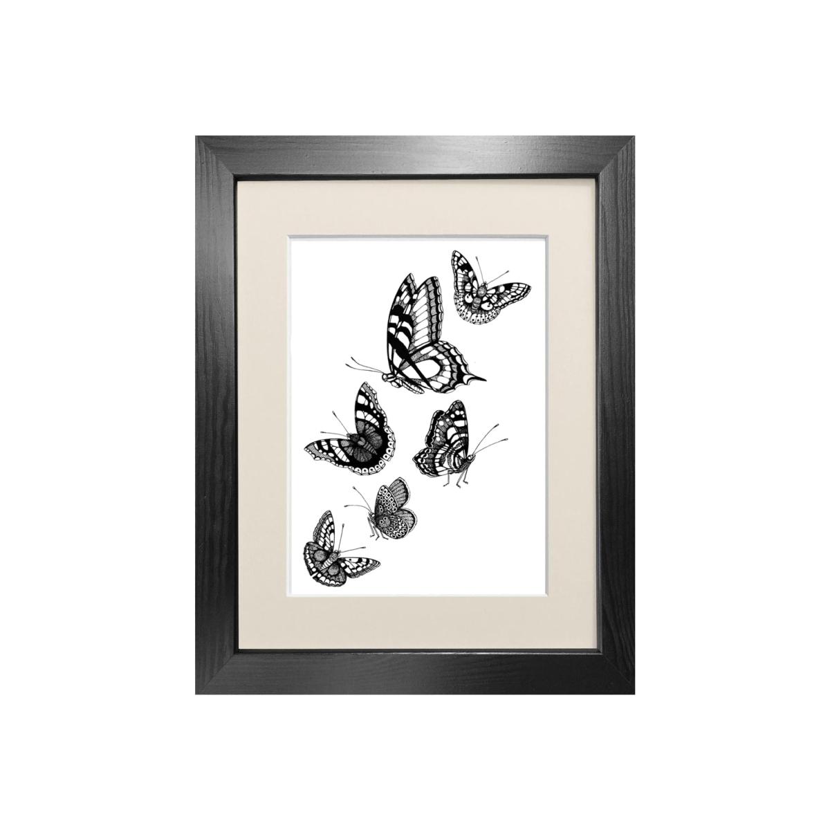 'British Butterfies' is from the series of Uk wildlife prints by Emily Carter. The illustration style invokes technical scientific drawings of the Victorian era which lead the mind to wonder where the possible ends and the impossible begins. This illustration includes classic British butterflies, including the Swallowtail and Red Admiral butterflies. Fine Art Print on 350gsm paper Signed by the Artist Sold Unframed Printed in London